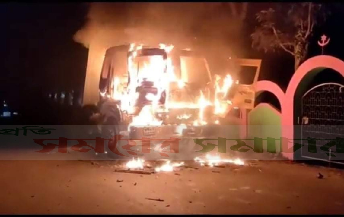 কুষ্টিয়ায় ড্রাম ট্রাকের ধাক্কায় প্রান গেল দুজনের, প্রতিবাদে গাড়িতে আগুন