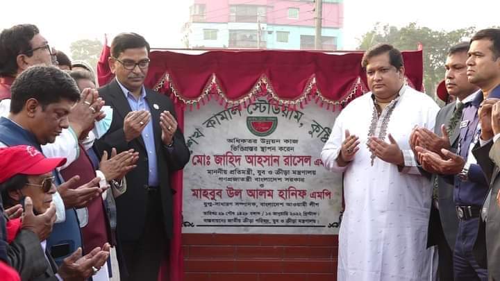 কুষ্টিয়া শেখ কামাল স্টেডিয়ামের ভিত্তিপ্রস্তর আনুষ্ঠানিকভাবে উদ্বোধন করেছেন কুষ্টিয়া সদর আসনের সংসদ সদস্য ও বাংলাদেশ আওয়ামী লীগের যুগ্ম-সাধারণ সম্পাদক মাহবুবউল আলম হানিফ এবং যুব ও ক্রীড়া প্রতিমন্ত্রী মোঃ জাহিদ আহসান রাসেল এমপি।