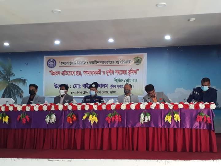 সন্ত্রাসবাদকে না বলুন, প্রতিপাদ্যকে সামনে রেখে কুষ্টিয়া জেলা পুলিশ কর্তৃক আয়োজিত দিশা ট্রেনিং এন্ড রিসোর্স সেন্টারের কনফারেন্স রুমে ১৭ জানুয়ারি সোবার সকাল ১১টায় “উগ্রবাদ প্রতিরোধে ছাত্র, গণমাধ্যম কর্মী ও সুশীল সমাজের ভূমিকা” শীর্ষক সেমিনার অনুষ্ঠিত হয়। অনুষ্ঠানের শুভ উদ্ধোধন করেন কুষ্টিয়া জেলা পুলিশের অতিরিক্ত পুলিশ সুপার (অপরাধ ও প্রশাসন) মোস্তাফিজুর রহমান।
