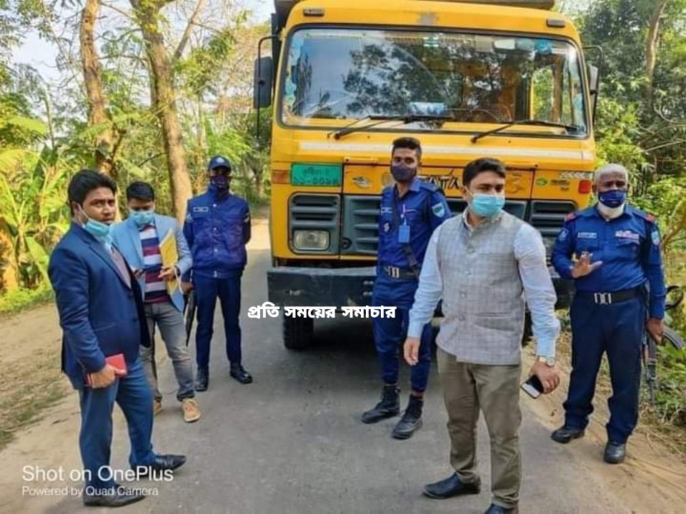 এসময় দুইটি ডাম্পার ট্রাক আটক করা হয়। পরে প্রত্যেক মালিককে ১০ হাজার টাকা করে ২০ হাজার টাকা জরিমানা আদায় করে।