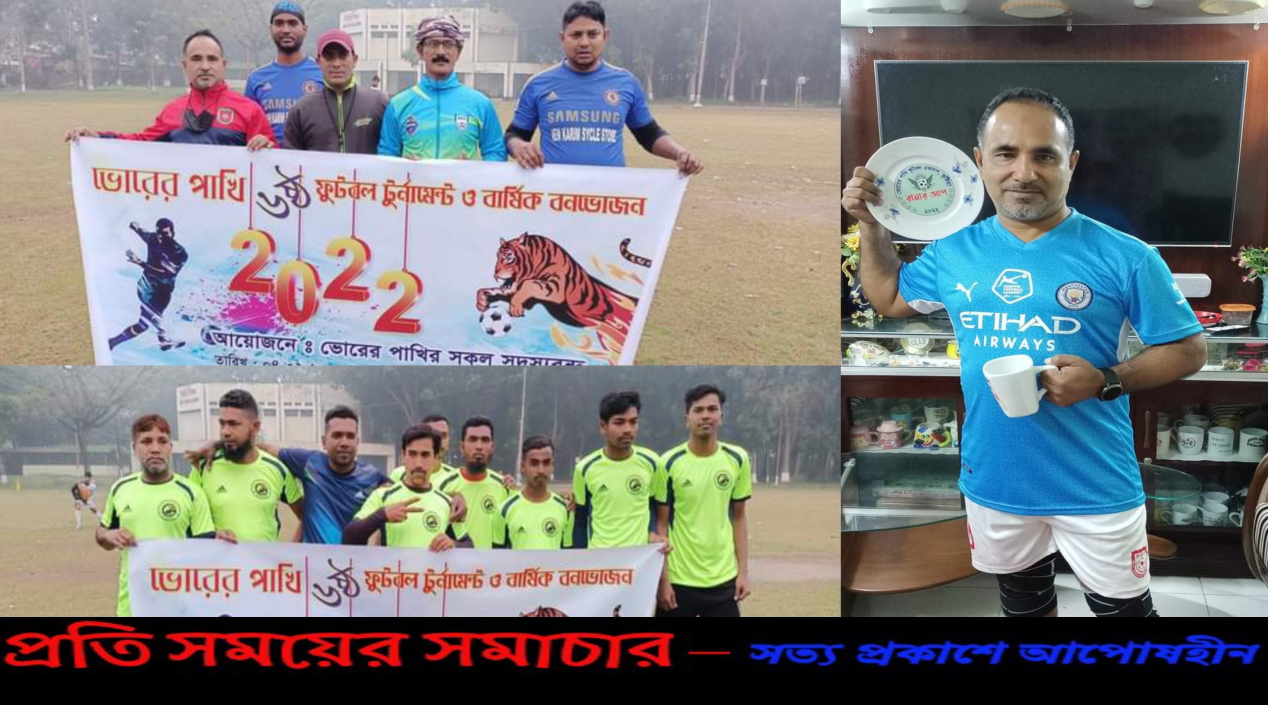 ভোরের পাখি সকল সদস্যদের আয়োজনে,ভোরের পাখি ফুটবল টুর্নামেন্টের খেলাটি পরিচালনা করেন জনাব দেলোয়ার হোসেন।