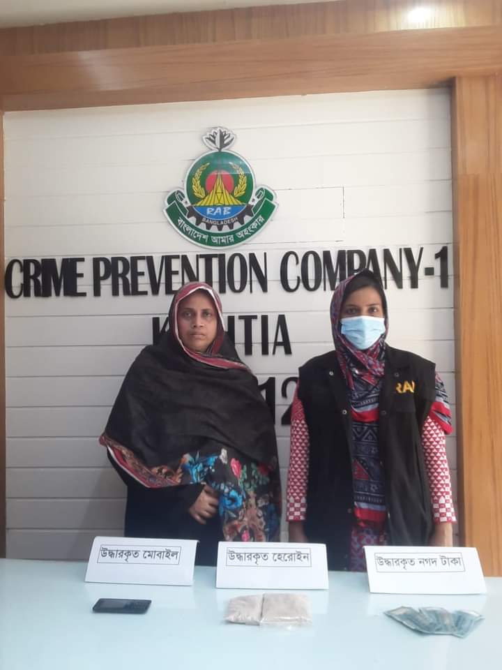 কুষ্টিয়া র‌্যাব-১২, সিপিসি-১, কুষ্টিয়া ক্যাম্পের একটি চৌকষ আভিযানিক দল অদ্য ১১ ফেব্রæয়ারি ২০২২ ইং তারিখ দুপর ০১:৫৫ ঘটিকার সময় ‘‘কুষ্টিয়া জেলার কুমারখালী থানাধীন হাসদিয়া গ্রামে” একটি মাদক বিরোধী অভিযান পরিচালনা করে। উক্ত অভিযানে ১৫৪ গ্রাম হেরোইন, যাহার আনুমানিক মূল্য- ৬,১৬,০০০/- (ছয় লক্ষ ষোল হাজার) টাকা, মোবাইল ফোন-০১ টি, সিম-০২ টি, নগদ ৩০০/- টাকাসহ ০১ জন আসামী মোছাঃ পারুল বেগম (৪৫), স্বামী- মোঃ তোহরুল ইসলাম, সাং-চৈতন্যপুর, থানা-শিবগঞ্জ, জেলা-চাঁপাইনবাবগঞ্জ’কে গ্রেফতার করা হয়। পরবর্তীতে উদ্ধারকৃত আলামতসহ ধৃত আসামীর বিরুদ্ধে কুষ্টিয়া জেলার কুমারখালী থানায় মাদক আইনে একটি মামলা দায়ের করা হয়েছে এবং গ্রেফতারকৃত আসামী’কে কুষ্টিয়া জেলার কুমারখালী থানায় সোপর্দ করা হয়েছে।