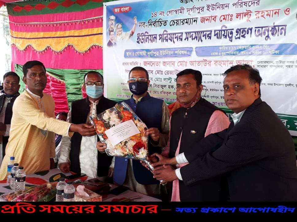 কুষ্টিয়া সদর উপজেলার ১৪ নং গোস্বামী দুর্গাপুর ইউনিয়নে নবনির্বাচিত চেয়ারম্যান লাল্টু রহমান এর দায়িত্ব গ্রহন অনুষ্ঠিত হয়।