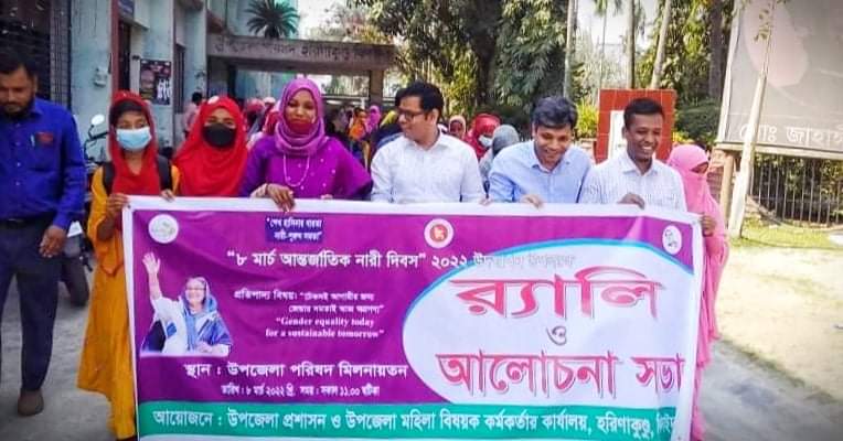 প্রতিপাদ্যের বিষয়কে সামনে রেখে হরিনাকুণ্ডুতে নানা কর্মসুচীর মধ্য দিয়ে উপজেলা প্রশাসন ও মহিলা বিষয়ক কর্মকর্তার কার্যালয়ের আয়োজনে আন্তর্জাতিক নারী দিবস ২০২২ পালন উপলক্ষে বর্ণাঢ্য র্যালী ও আলোচনা সভা অনুষ্ঠিত হয়েছে।