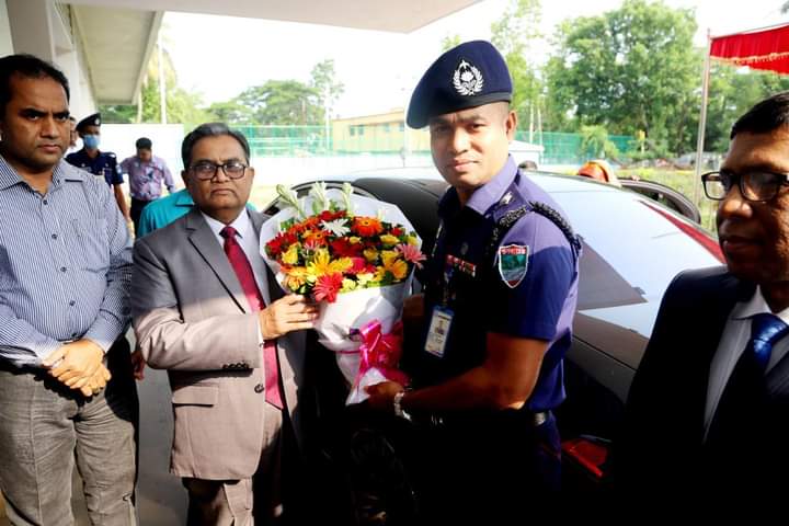 প্রধান বিচারপতিকে ফুলেল শুভেচ্ছা জ্ঞাপন করলেন এসপি খাইরুল আলম