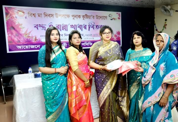 পুনাক কুষ্টিয়া’র উদ্যোগে বিশ্ব “মা” দিবসে অবহেলিত ও অসহায় “মা”দের মাঝে বস্ত্র ও উন্নতমানের খাবার বিতরণ