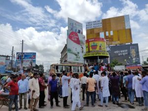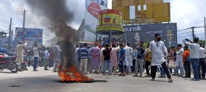 টায়ারে আগুন জ্বালিয়ে বিক্ষোভ