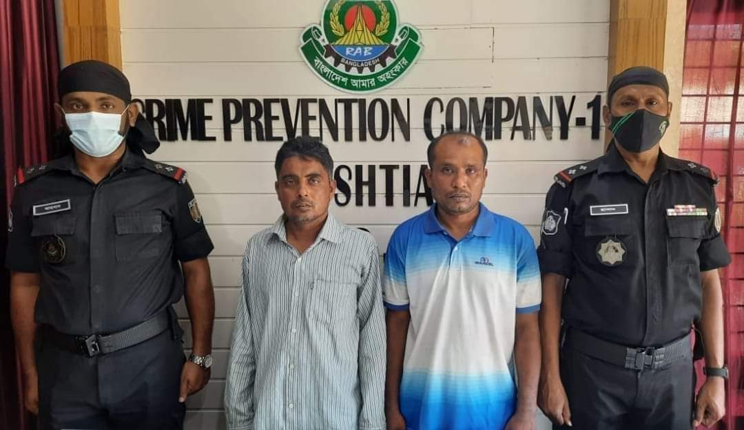 গ্রেফতারকৃতরা হলেন কুষ্টিয়া শহরের থানাপাড়া এলাকার মৃত হামিদ মোল্লার ছেলে কাজী সোহান শরিফ (৪০) ও একই এলাকার মৃত খন্দকার হারুন উর রশিদের ছেলে খন্দকার আশিকুর রহমান জুয়েল (৩৫)।