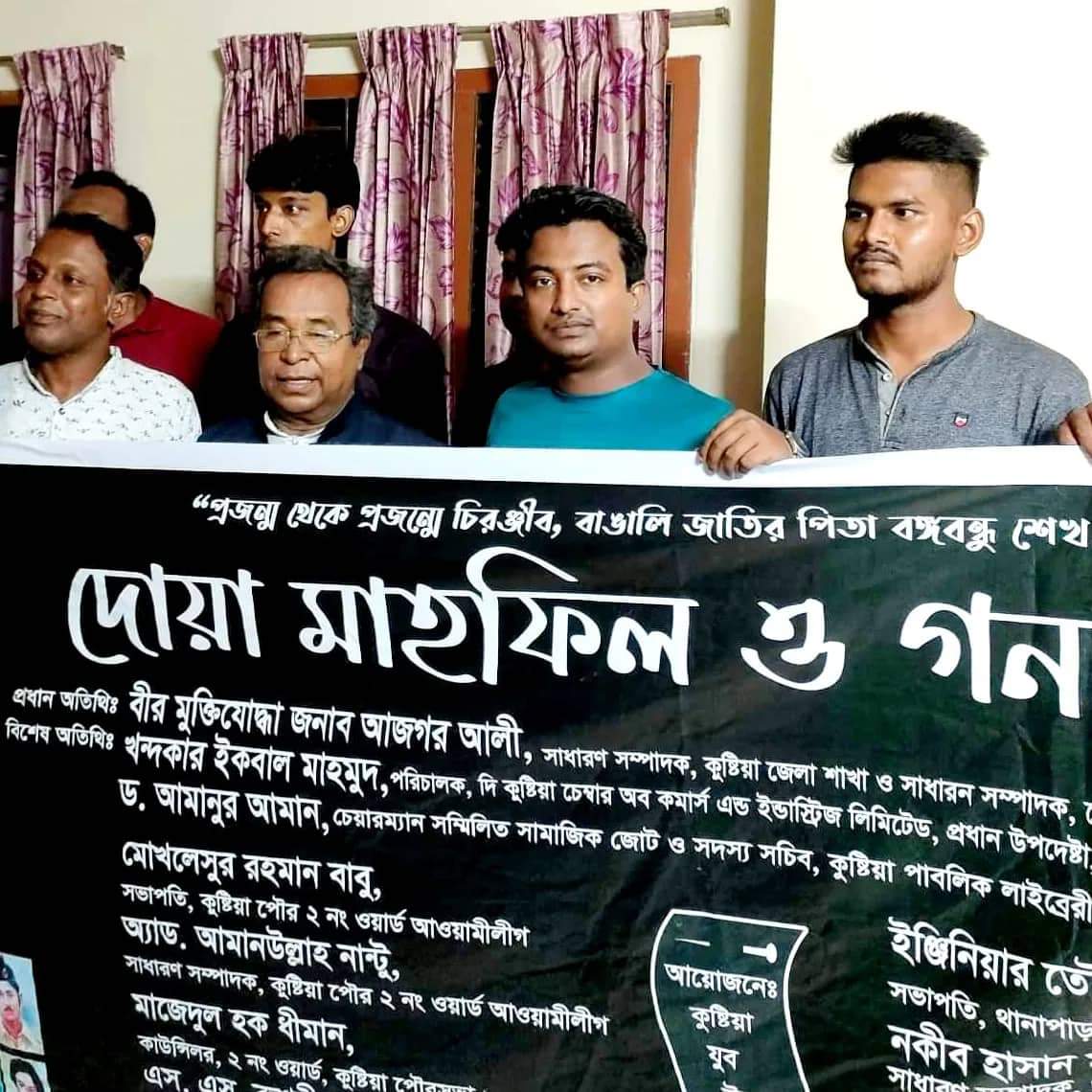 কুষ্টিয়া যুব উন্নয়ন পরিষদের উদ্যোগে থানাপাড়া বাধে মসজিদুল বাক্বীতে দোয়া মাহফিল ও গণভোজ বিতরণ
