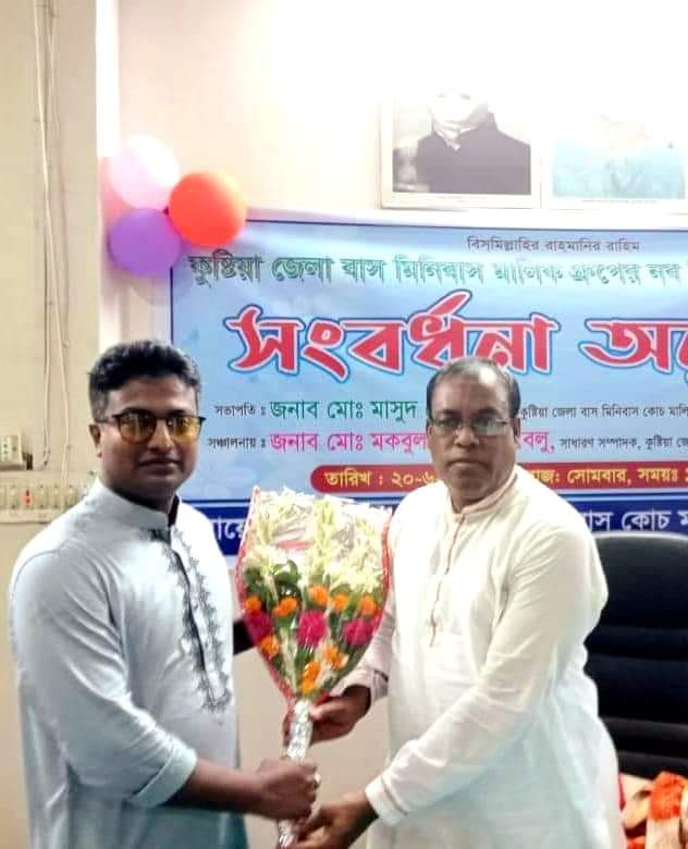 গতকাল ১৬-০৯-২২ (শুক্রবার) কুষ্টিয়া মিনিবাস মালিক সমিতির কার্যালয়ে কুষ্টিয়া জেলা কৃষকলীগের সভাপতি, জেলা ক্রীড়া সংস্থার সহসভাপতি, মিনিবাস মালিক সমিতির সাধারণ সম্পাদক জনাব মকবুল হোসেন লাভলুর সভাপতিত্বে এবং কেন্দ্রীয় কৃষকলীগের সদস্য, কুষ্টিয়া জেলা কৃষকলীগের সাধারণ সম্পাদক, কুষ্টিয়া বটতৈল ইউনিয়নের সাবেক চেয়ারম্যান এম. এ মমিন মন্ডলের সঞ্চালনায়,কুষ্টিয়া জেলা ছাত্রলীগের সাবেক সাংস্কৃতিক সম্পাদক,থানাপাড়ার কৃতি সন্তান অ্যাডভোকেট মোঃ মুহাইমিনুর রহমান পললকে যুগ্ম আহবায়ক পদে নাম প্রস্তাব করেন এ সময় কেন্দ্রীয় নেতাদের সম্মতিক্রমে সমর্থন করেন সাধারণ সম্পাদক ও জেলার নেতৃবৃন্দ।