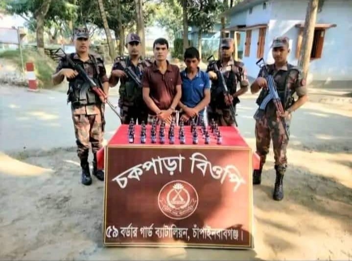 চাঁপাইনবাবগঞ্জ তোহাখানা সীমান্তে ফেন্সিডিলসহ ২ জন আটক