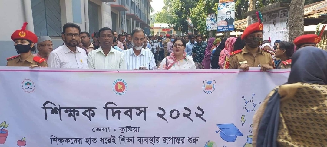 শিক্ষকদের হাত ধরেই শিক্ষা ব্যবস্থার রুপান্তর শুরু এই প্রতিপাদ্যকে সামনে রেখে কুষ্টিয়ায় শিক্ষক দিবস উপলক্ষে র্যালি ও আলোচনা সভা অনুষ্ঠিত হয়েছে।
