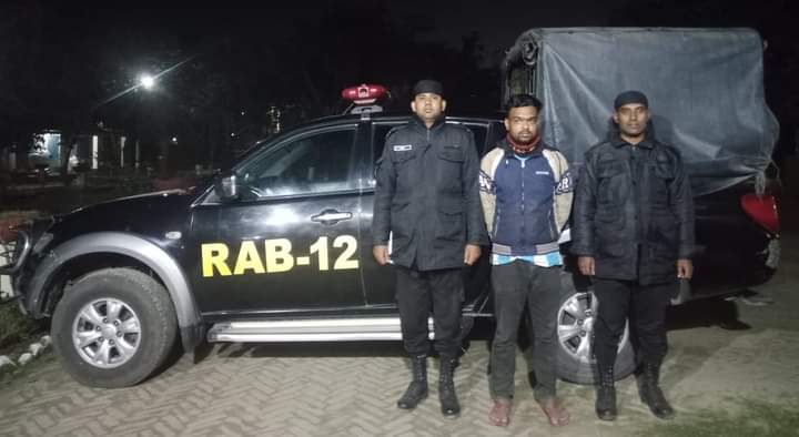র্যাব সূত্রে জানা যায়,গোপন সংবাদের ভিত্তিতে, জানতে পারেন কুষ্টিয়া জেলার ভেড়ামারা থানাধীন নওদাপাড়া গ্রামের পাকা রাস্তার উপর বিভিন্ন ট্রাক হতে অবৈধভাবে চাঁদা আদায় করছে, সেই মোতাবেক গত ১০ ফেব্রুয়ারি ২০২৪ খ্রিঃ বিকাল ০৫.৪০ ঘটিকায় র্যাব-১২’র সিপিসি-১, কুষ্টিয়া কোম্পানীর একটি চৌকষ আভিযানিক দল “কুষ্টিয়া জেলার ভেড়ামারা থানাধীন নওদাপাড়া গ্রামের পাঁকা রাস্তার উপর” অভিযান পরিচালনা করে অবৈভভাবে চাঁদা আদায় করা অবস্থায় চাঁদা আদায়ের নগদ ৬,৩০০/-টাকা এবং ০২টি টর্চ লাইট সহ এক জনকে গ্রেফতার করতে সক্ষম হয়।