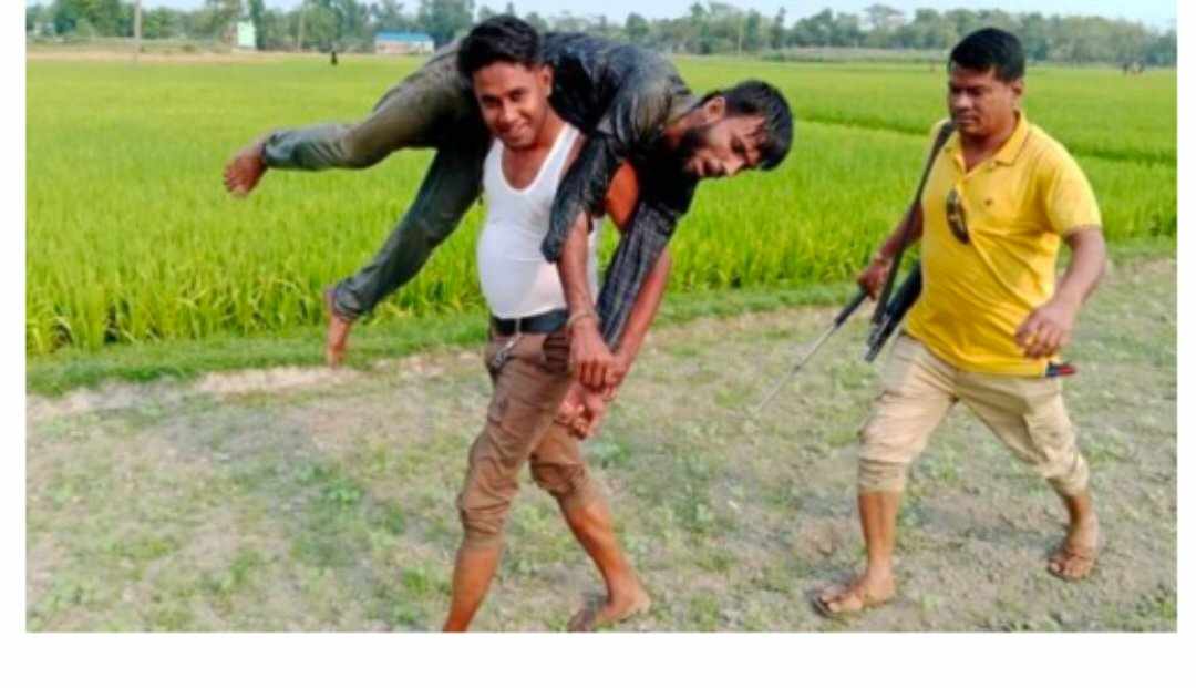 ডাকাত ধরে কাঁধে করে নিয়ে এলো পুলিশ