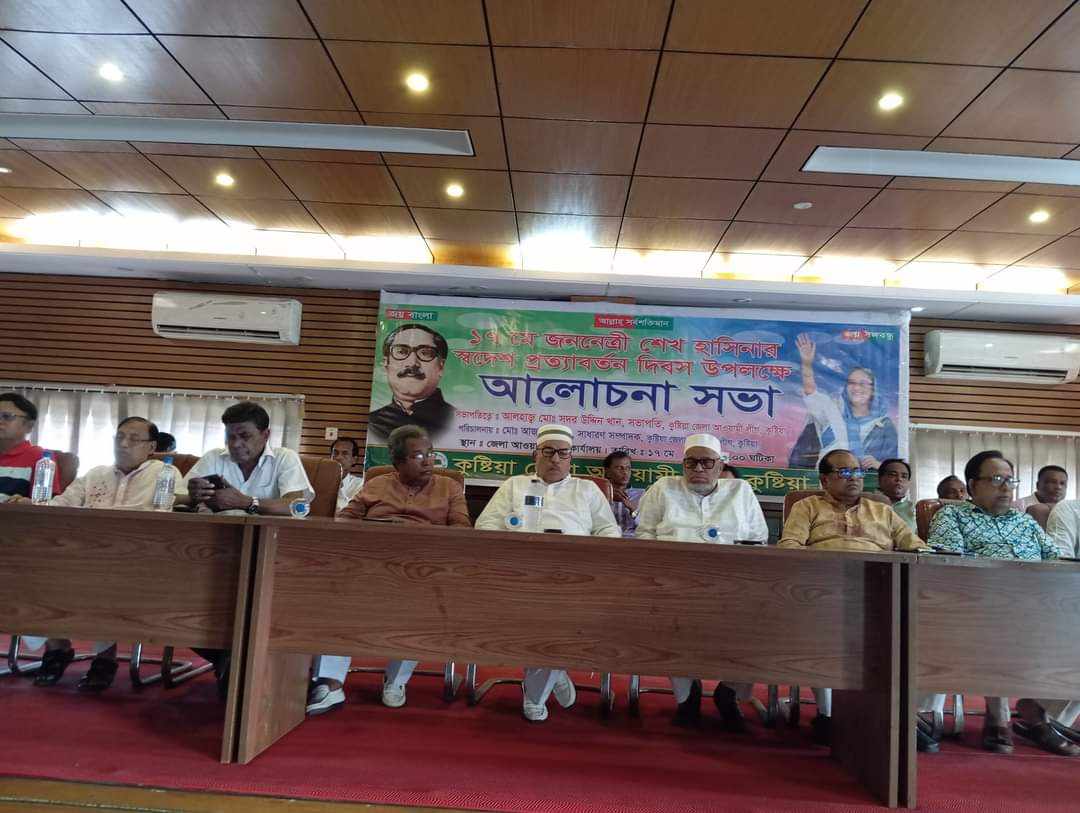 কুষ্টিয়ায় আ’লীগের উদ্যোগে শেখ হাসিনার স্বদেশ প্রত্যাবর্তন দিবসে আলোচনা সভা