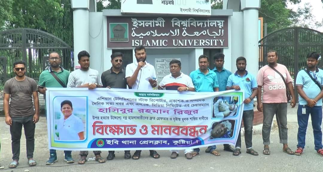 সংবাদ প্রকাশের জেরে এশিয়ান টেলিভিশনের কুষ্টিয়ার স্টাফ রিপোর্টার ও স্থানীয় দৈনিক সত্যখবর পত্রিকার সম্পাদক হাসিবুর রহমান রিজুর ওপর নৃশংস সন্ত্রাসী হামলা ও তার ব্যবহৃত মোটরসাইকেল ভাঙচুরের প্রতিবাদে বিক্ষোভ মিছিল ও মানববন্ধন করেছে ইবি থানা প্রেসক্লাব।