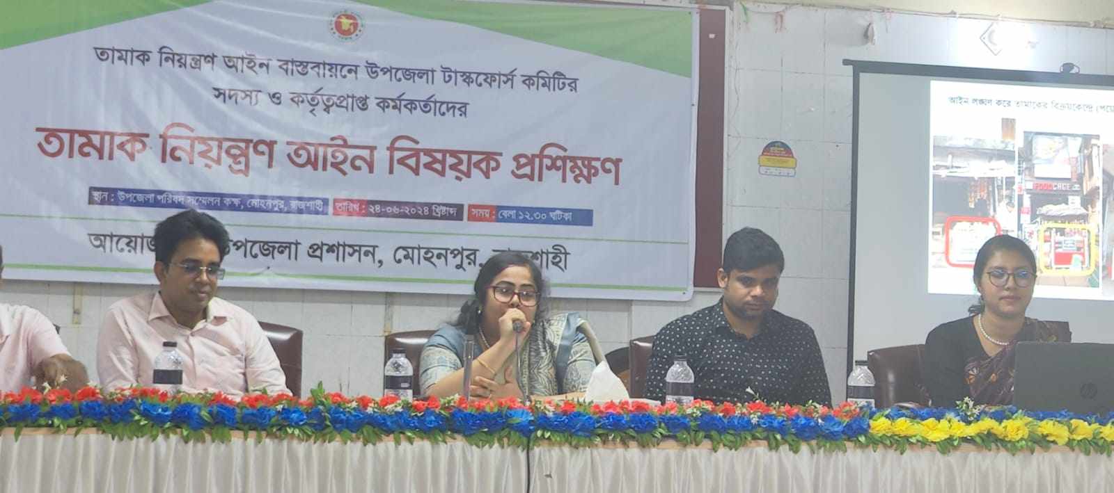 রাজশাহীঃ তামাক নিয়ন্ত্রণ আইন বাস্তবায়নে রাজশাহীর মোহনপুরে দিনব্যাপী প্রশিক্ষণ কর্মশালা অনুষ্ঠিত হয়েছে।