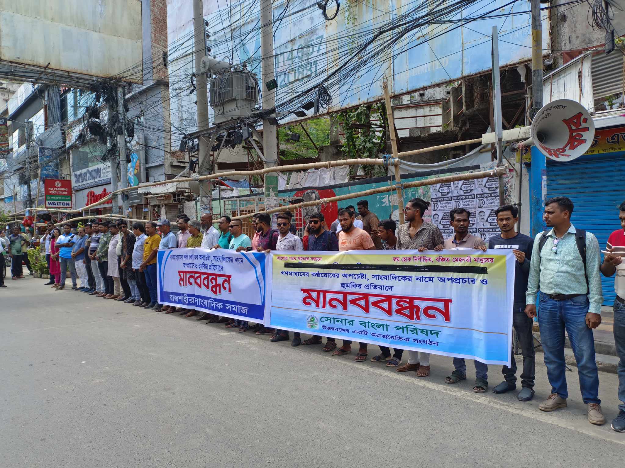 স্বাধীন গণমাধ্যমে হুমকি, কণ্ঠ রোধে চেষ্টা, প্রতিবাদে রাজশাহীতে মানববন্ধন