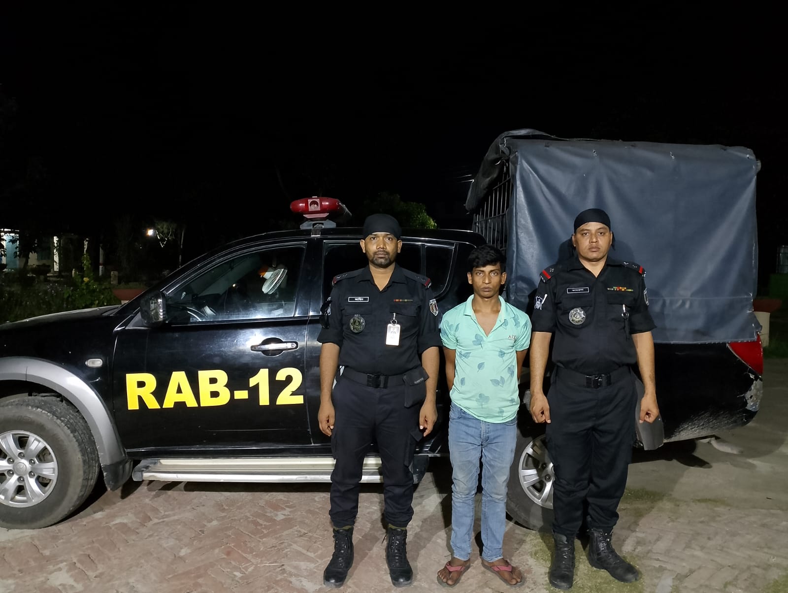 র‍্যাব সুত্রে জানা যায়, র‌্যাব-১২, সিরাজগঞ্জ হেডকোয়ার্টারের অধিনায়ক মোঃ মারুফ হোসেন বিপিএম পিপিএম এর দিক নির্দেশনায় র‌্যাব-১২’র সিপিসি-১, কুষ্টিয়া ক্যাম্পের কোম্পানীর একটি চৌকষ আভিযানিক দল ‘‘কুষ্টিয়া জেলার সদর থানাধীন ভাদালীয়া গ্রামে” গোপন সংবাদের ভিত্তিতে অভিযান পরিচালনা করে ০১টি ওয়ান শুটারগান, ০১টি মোবাইল এবং ০২টি সিম সহ আসামিকে গ্রেফতার করেন।