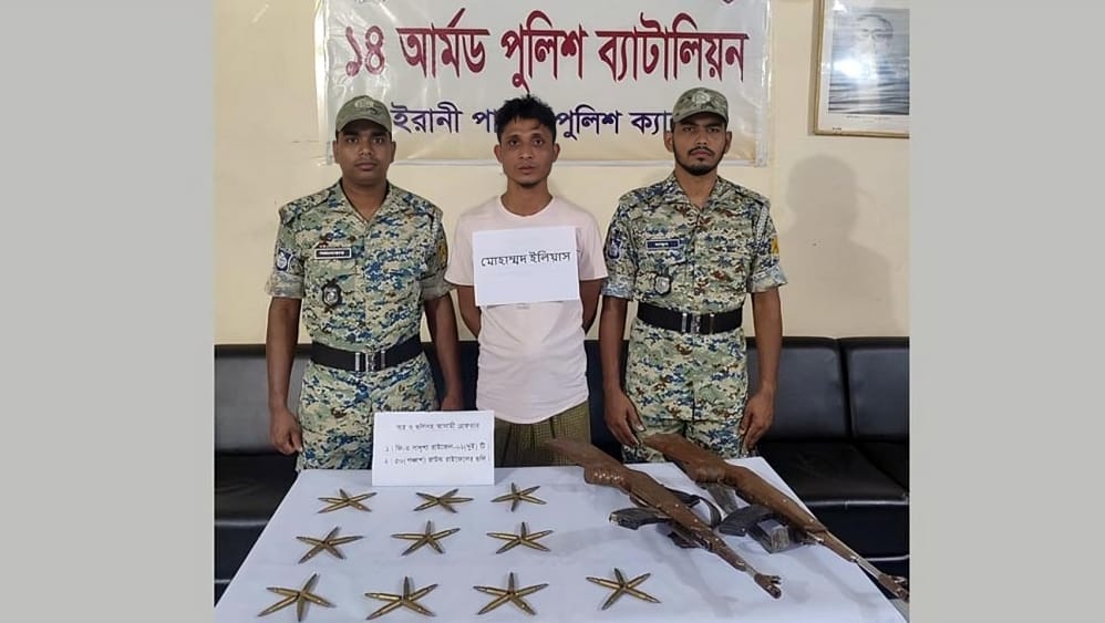 কক্সবাজারের উখিয়া উপজেলার ২০ নম্বর রোহিঙ্গা ক্যাম্প এলাকা থেকে সম্প্রতি মিয়ানমারের যুদ্ধ ফেরত ১ আরসা সন্ত্রাসীকে জি-৩ সাদৃশ্য ২টি রাইফেল ও ৫০ রাউন্ড রাইফেলের গুলিসহ গ্রেপ্তার করেছে।