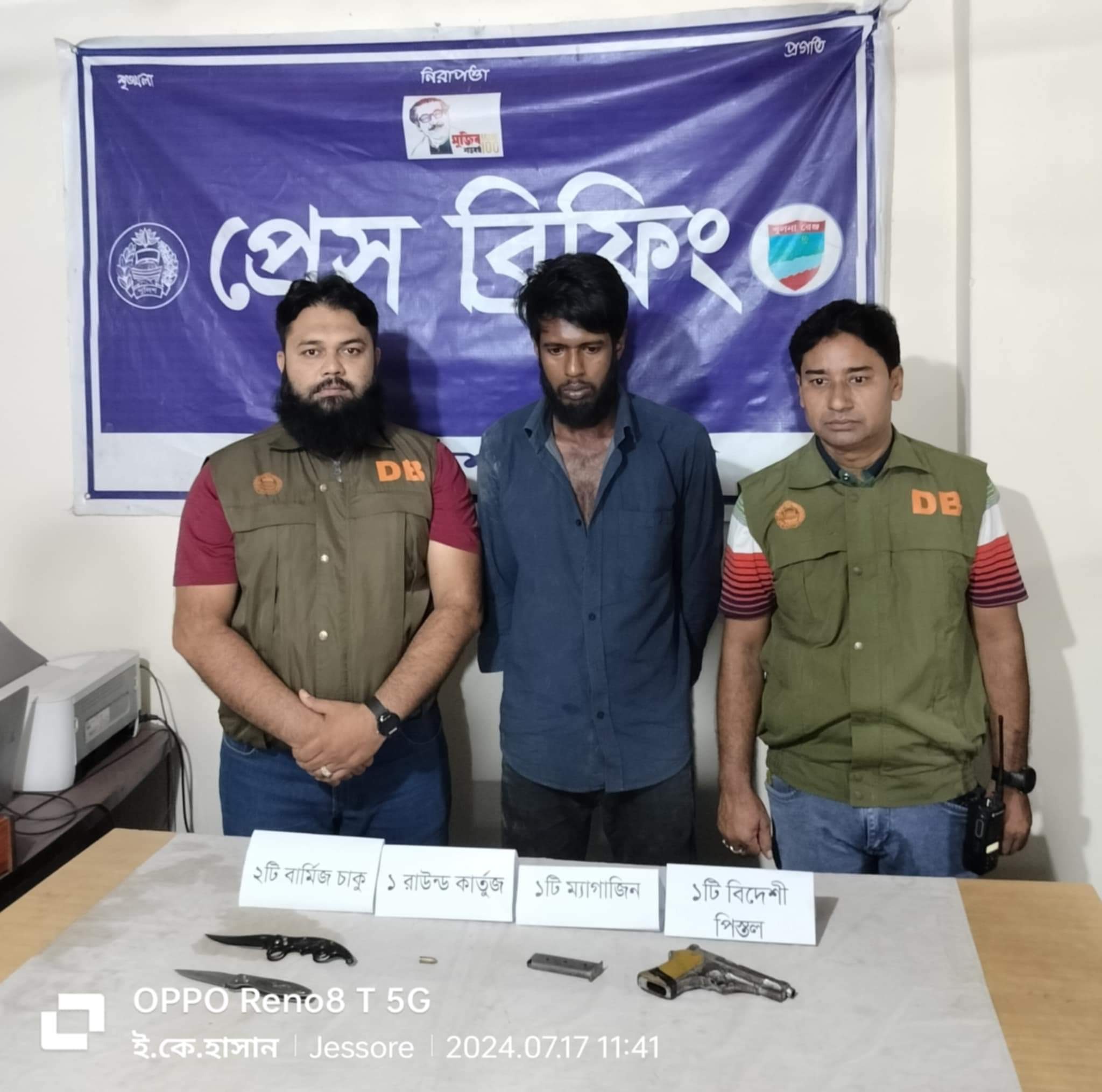 গত ১৬ জুলাই ২০২৪ খ্রিঃ মঙ্গলবার রাত ১১.০০ ঘটিকার সময় যশোর জেলা গোয়েন্দা শাখা (ডিবি) এর এসআই(নিঃ)/বিপ্লব সরকার, এসআই(নিঃ)/মোঃ শাহিনুর রহমান (পিপিএম), এএসআই(নিঃ)/মোঃ আমিরুল ইসলাম ও সংগীয় ফোর্সের সমন্বয়ে একটা চৌকস টিম অবৈধ অস্ত্র-গুলি ও মাদকদ্রব্য উদ্ধার অভিযান পরিচালনা করেন।