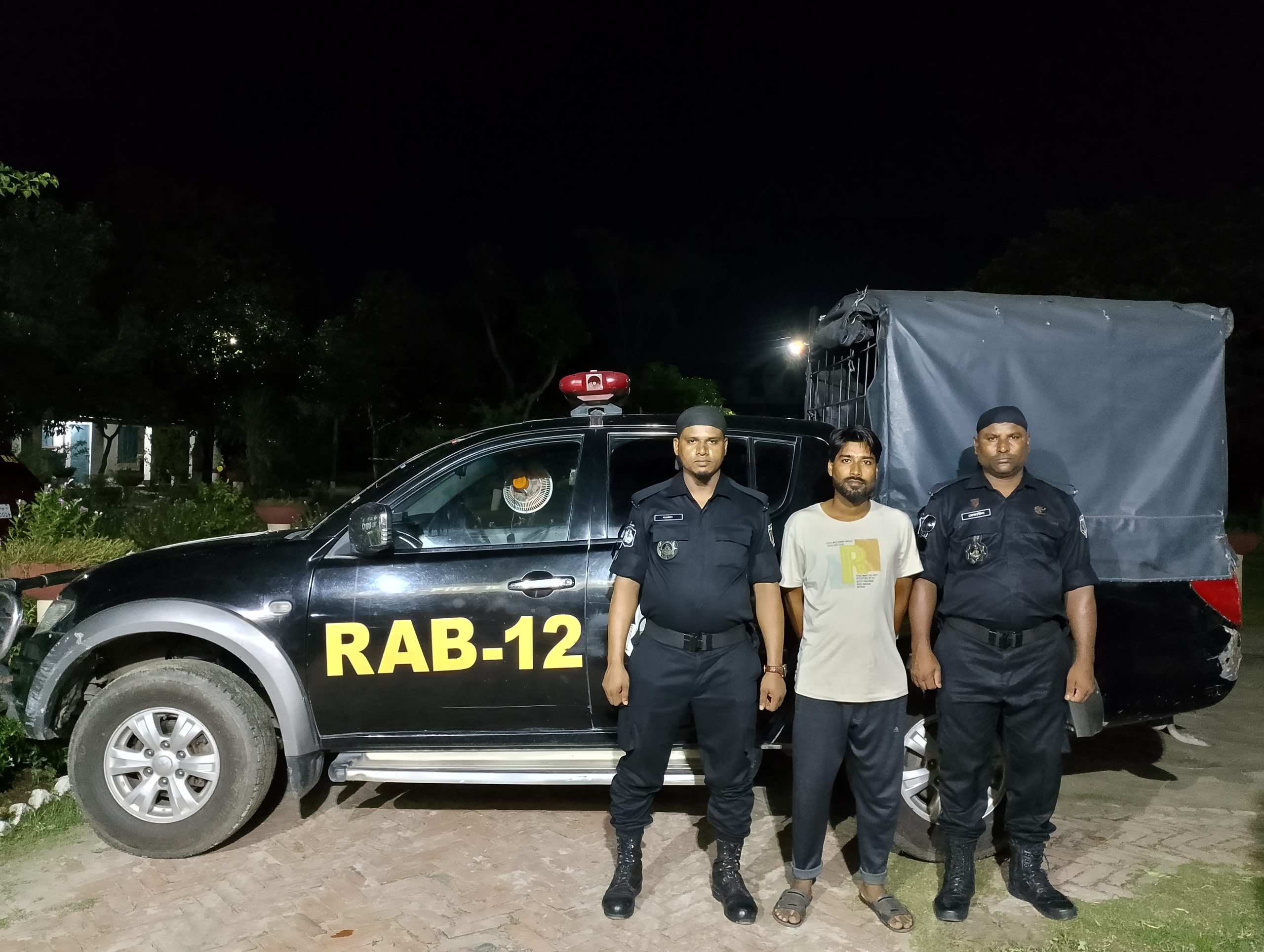গত ১৭ জুলাই ২০২৪ তারিখ আনুমানিক ১৮১০ ঘটিকার সময় কুষ্টিয়া জেলার সদর থানাধীন চৌড়হাস ফুলতলা এলাকায় আনুমানিক ১৫০ জন হতে ২০০ জন অজ্ঞাত কোটা বিরোধী নামধারী সন্ত্রাসীরা জনসাধারনের চলাচলের রাস্তায় বেআইনী জনতাবদ্ধে দেশীয় অস্ত্র-শস্ত্রে সজ্জিত হয়ে পথচারীদের যানবাহন থামিয়ে ভাংচুর, অগ্নিসংযোগ এবং হত্যার উদ্দেশ্যে গুরুতর জখম করে। উক্ত ঘটনার প্রেক্ষিতে  কুষ্টিয়া মডেল থানায় একটি মামলা রুজু হয়, যার মামলা নং-২২/২৭৯ তারিখ ১৮ জুলাই ২০২৪, ধারা-১৪৩/১৪৭/১৪৯/৩২৩/৩২৫/৩০৭/৪৩৫/৪২৭/৫০৬(২) পেনাল কোড ১৮৬০। এরই ধারাবাহিকতায় উক্ত ঘটনার ভিডিও ফুটেজ পর্যালোচনা করে র‌্যাব-১২, সিপিসি-১, কুষ্টিয়া ক্যাম্পের কোম্পানী কমান্ডার স্কোয়াড্রন লীডার মোহাম্মদ ইলিয়াস খান এর নেতৃত্বে একটি আভিযানিক দল অদ্য ২৫ জুলাই ২০২৪ ইং তারিখ বিকাল ০৬:৫০ ঘটিকায় ‘‘কুষ্টিয়া জেলার সদর থানাধীন খাজানগর এলাকায়’’ একটি অভিযান পরিচালনা করে মোঃ মেহেদী হাসান জিকু (২৬), পিতা-মোঃ মতিয়ার রহমান, সাং-খাজানগর চাষি ক্লাব পাড়া, থানা-কুষ্টিয়া সদর, জেলা-কুষ্টিয়া’কে গ্রেফতার করে। পরবর্তীতে ধৃত আসামিকে আইনানুগ ব্যবস্থা গ্রহণের জন্য কুষ্টিয়া জেলার সদর থানায় হস্তান্তর করা হয়েছে।