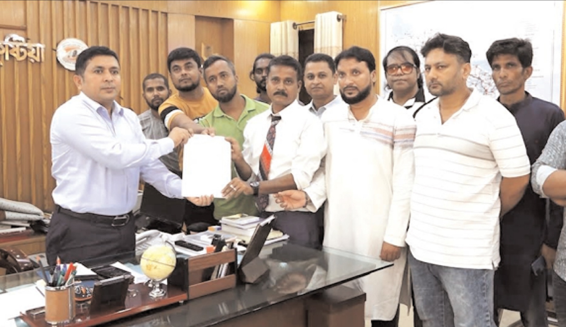 বাংলাদেশ সম্মিলিত পেশাজীবি পরিষদ কুষ্টিয়া জেলা শাখার উদ্যোগে আন্দোলনে নিহত পরিবারের সদস্যদের চাকুরি প্রদানের দাবিতে  বাংলাদেশ সরকারের প্রধান উপদেষ্টা বরাবর স্বারকলিপি প্রদান