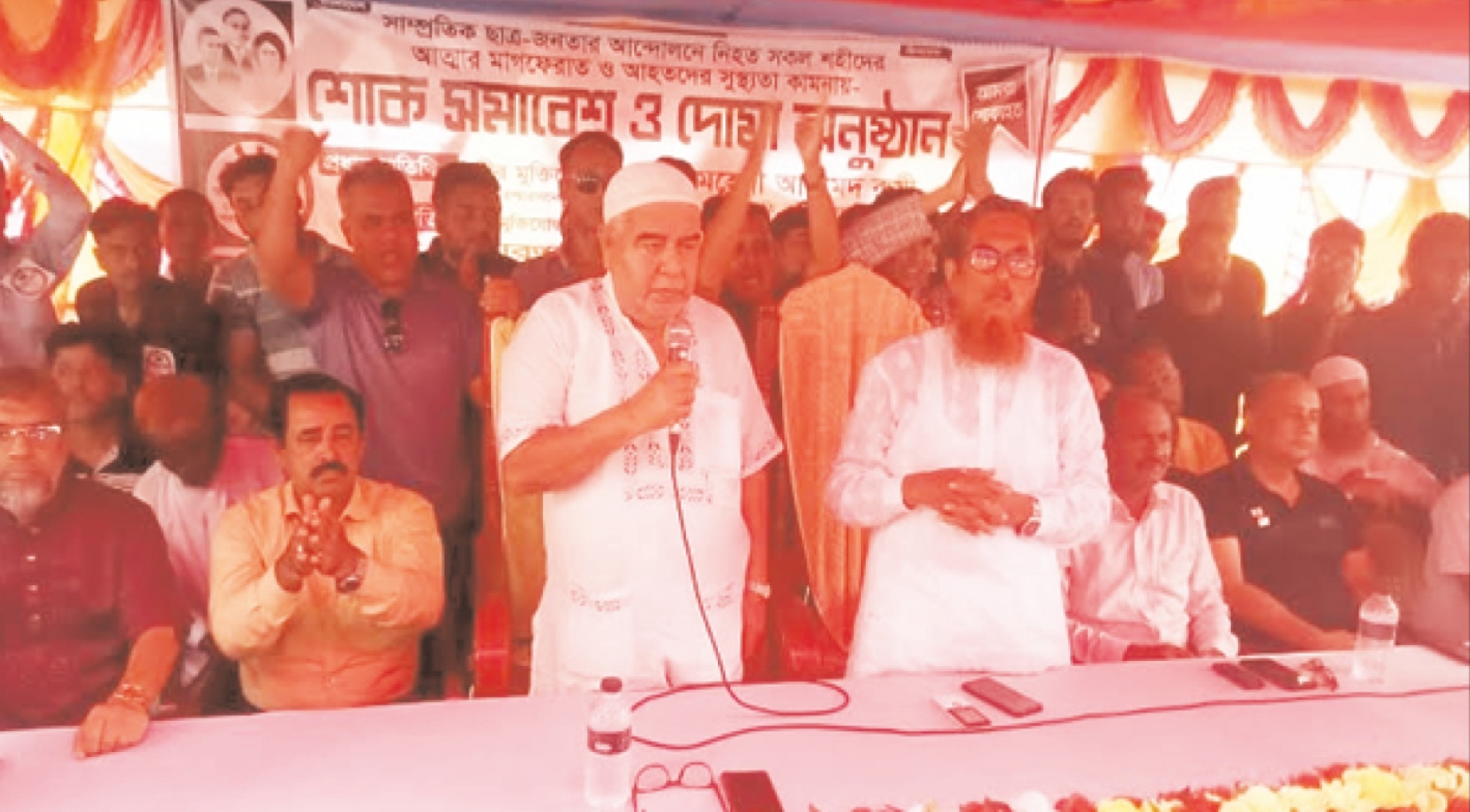 সাম্প্রতিক ছাত্র-জনতার আন্দোলনে নিহত সকল শহীদের আত্মার মাগফেরাত ও আহতদের সুস্থতা কামনায় জেলার খোকসা উপজেলা বিএনপি’র উদ্যোগে শোক সমাবেশ ও দোয়া অনুষ্ঠান হয়েছে। সোমবার একতারপুর ইউনিয়নে এ অনুষ্ঠান হয়। খোকসা উপজেলা বিএনপি’র আহবায়ক (সাবেক উপজেলা চেয়ারম্যান) সৈয়দ আমজাদ আলী’র সভাপতিত্বে প্রধান অতিথি হিসেবে উপস্থিত বক্তব্য রাখেন সাবেক সংসদ সদস্য, বিএনপি চেয়ারপার্সন দেশনেত্রী বেগম খালেদা জিয়ার উপদেষ্টা পরিষদের সদস্য ও কুষ্টিয়া জেলা বিএনপির সভাপতি বীর মুক্তিযোদ্ধা সৈয়দ মেহেদী আহমেদ রুমী। তিনি বলেন, স্বৈরাচারী শেখ হাসিনার পতনে দেশের গণতন্ত্র মুক্তি পেয়েছে। খালেদা জিয়া সুস্থ হয়ে আবারও ভোটের মাধ্যমে ক্ষমতায় গিয়ে দেশ পরিচালনা করবেন। তারেক রহমান দেশে ফিরে গণমানুষের কাণ্ডারি হবেন। তিনি বলেন, ফ্যাসিস্ট শেখ হাসিনা কর্তৃক ছাত্র-জনতার ওপর গুলি চালিয়ে গণহত্যা এবং খুনি হাসিনাসহ তার খুনি দোসরদের বিচারের দাবি জানান। আরো বক্তব্য রাখেন কুষ্টিয়া জেলা বিএনপির সাংগঠনিক সম্পাদক খোন্দকার সামছুজ্জাহিদ, জেলা বিএনপির যুব বিষয়ক সম্পাদক ও জেলা যুবদলের সি-ি নয়র সহ-সভাপতি মেজবাউর রহমান পিন্টু, কুমারখালী উপজেলা বিএনপির সদস্য সচিব এ্যাড, শাতিল মাহমুদ, জেলা ছাত্রদলের সাবেক সাংগঠনিক সম্পাদক রোকনুজ্জামান রাসেল। উপস্থিত ছিলেন খোকসা উপজেলা বিএনপির সদস্য সচিব সরদার মনিরুজ্জামান কাজল, খোকসা পৌর বিএনপির সিনিয়র সহ সভাপতি কালাম কমিশনার, সাংগঠনিক সম্পাদক ইস্তেকবাল চয়ন,বেতবাড়ীয়া ইউনিয়ন বিএনপির সভাপতি আব্দুল আজিজ (সাবেক চেয়ারম্যান), সাধারণ সম্পাদক আমিন উদ্দিন বিশ্বাস, জয়ন্তীহাজরা ইউনিয়ন বিএনপির সাধারণ সম্পাদক জাহাঙ্গীর আলম (সাবেক চেয়ারম্যান), শিমু- লিয়া ইউনিয়ন বিএনপির সাধারণ সম্পাদক মোমিনুর হরমান (সাবেক চেয়ারম্যান), সাংগঠনিক সম্পাদক আবু মেম্বার, গোপগ্রাম ইউনিয়ন বিএনপির সভাপতি শফিকুল আলম মোল-া, সাধারন সম্পাদক শফিকুল ইসলাম, খোকসা ইউনিয়ন বিএনপির সভাপতি কাওসার উল আলম সৌউদ, সাংগঠনিক সম্পাদক সোহেল রানা মানিক, আমবাড়িয়া ইউনিয়ন বিএনপির সভাপতি আজগর আলী মন্ডল, সাধারন সম্পাদক রেজাউল মাস্টার, ওসমানপুর ইউনিয়ন বিএনপির সভাপতি আবু তৈয়ব সরকার, সাধারণ সম্পাদক আবু জায়েদ সান্টু, জেলা যুবদলের ক্রিয়া সম্পাদক জাকির হোসেন জনি, খোকসা উপজেলা ছাত্রদলের সাবেক সভাপতি রোকনউদ্দিন রোকন, খোকসা পৌর স্বেচ্ছাসেবক দলের সাবেক সাধারণ সম্পাদক রবিন রায়হান জসিম, উপজেলা ছাত্রদলের সাবেক সাধারণ সম্পাদক শরিফুল ইসলাম, শামিম আহম্মেদ, লায়ন মেম্বার, শহীদ মেম্বার, মজিবুর রহমান মাল, রেজাউল মাস্টার, রাজ্জাক মেম্বার, আকরাম কাজী, ইয়াসির আরাফাত, ফজলুর রহমান, কামরুজ্