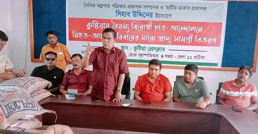 কুষ্টিয়ায় বৈষম্য বিরোধী আন্দোলনে নিহত ও আহত পরিবারের মাঝে খাদ্য সামগ্রী বিতরন