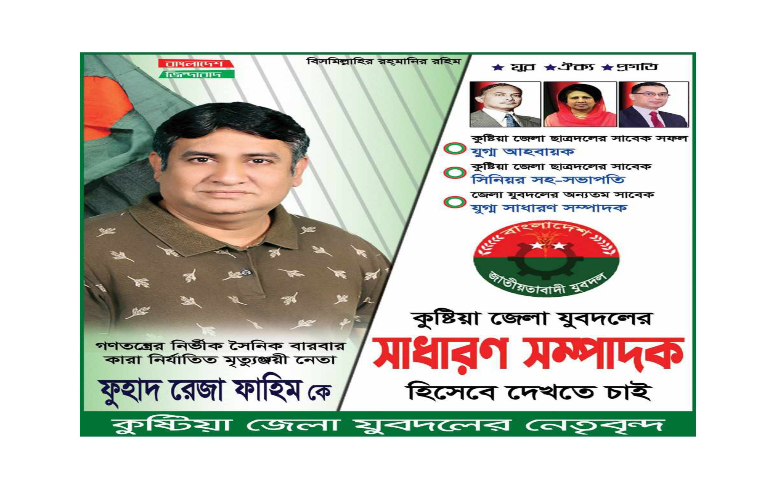 কুষ্টিয়া জেলা যুবদলের সম্পাদক প্রার্থী ফাহিম