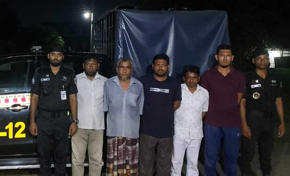 শুক্রবার (২০সেপ্টেম্বর) সন্ধা সাড়ে ৭টার দিকে কুষ্টিয়া র‌্যাব-১২, সিপিসি-১, কুষ্টিয়া ক্যাম্পের একটি চৌকষ আভিযানিক দল ‘মিরপুর থানাধীন নিমতলা বাজার এলাকায়’ অভিযান পরিচালনা করে। এ অভিযানে কুষ্টিয়া জেলার মিরপুর থানায় গত ২৭আগষ্ট দায়েরকৃত ১১নং মামলার পাঁচ আসামীকে গ্রেফতার করে। আসামীরা হলেন, মিরপুর উপজেলার নওদাপাড়ার মৃত রুস্তম মালিথার পুত্র নুরুল মাষ্টার(৫৫), ও নুরুল মাষ্টারের পুত্র ইমতিয়াজ ইসলাম জীবন (৩৪), লুৎফর মন্ডলের পুত্র আরাফ মাষ্টার (৫০), এবং নিমতলা এলাকার আব্দুল মান্নানের দুই পুত্র আলম (৫৫) ও শফিকুল ইসলাম ওরফে বাবুল মাষ্টার (৪০)। পরে আসামিদেরকে আইনানুগ ব্যবস্থা গ্রহণের জন্য কুষ্টিয়া জেলার মিরপুর থানায় হস্তান্তর করে।