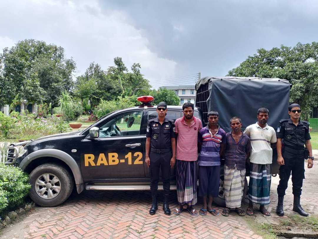কুষ্টিয়া র্যাব-১২, সিপিসি-১ ক্যাম্পের কোম্পানি কমান্ডার স্কোয়াড্রন লীডার মোহাম্মদ ইলিয়াস খান এর নেতৃত্বে একটি চৌকষ আভিযানিক দল ২৭ সেপ্টেম্বর ২০২৪ তারিখ সকাল ৭ টার সময় র্যাব সদর দপ্তর গোয়েন্দা শাখার সহযোগিতায় ‘‘কুষ্টিয়া জেলার দৌলতপুর থানাধীন সোনাইকুন্ডি গ্রামে’’ একটি মাদক উদ্ধার অভিযান পরিচালনা করে। উক্ত অভিযানে ০৮ কেজি গাঁজা ও ৫৪ বোতল ফেনসিডিল, যাহার মূল্য আনুমানিক ৪,০২,০০০/- টাকা সহ ১। মোঃ জহুরুল ইসলাম (৪২), ২। মোঃ ফারুক হোসেন (৩৬), উভয় পিতা-মোঃ মাবুদ আলী @ মাহাবুল, ৩। মোঃ টিপু সরদার (৪২), পিতা-মৃত কলিম সরদার এবং ৪। মোঃ সজীব মন্ডল (২৮), পিতা-মোঃ আনারুল মন্ডল, সর্ব সাং-সোনাইকুন্ডি (পশ্চিমপাড়া), থানা-দৌলতপুর, জেলা-কুষ্টিয়াদের গ্রেফতার করা হয়। পরবর্তীতে ধৃত আসামিদের বিরুদ্ধে কুষ্টিয়া জেলার দৌলতপুর থানায় মাদক আইনে একটি মামলা দায়ের করা হয়েছে এবং উদ্ধারকৃত আলামত সহ ধৃত আসামিদের থানায় সোপর্দ করা হয়েছে।