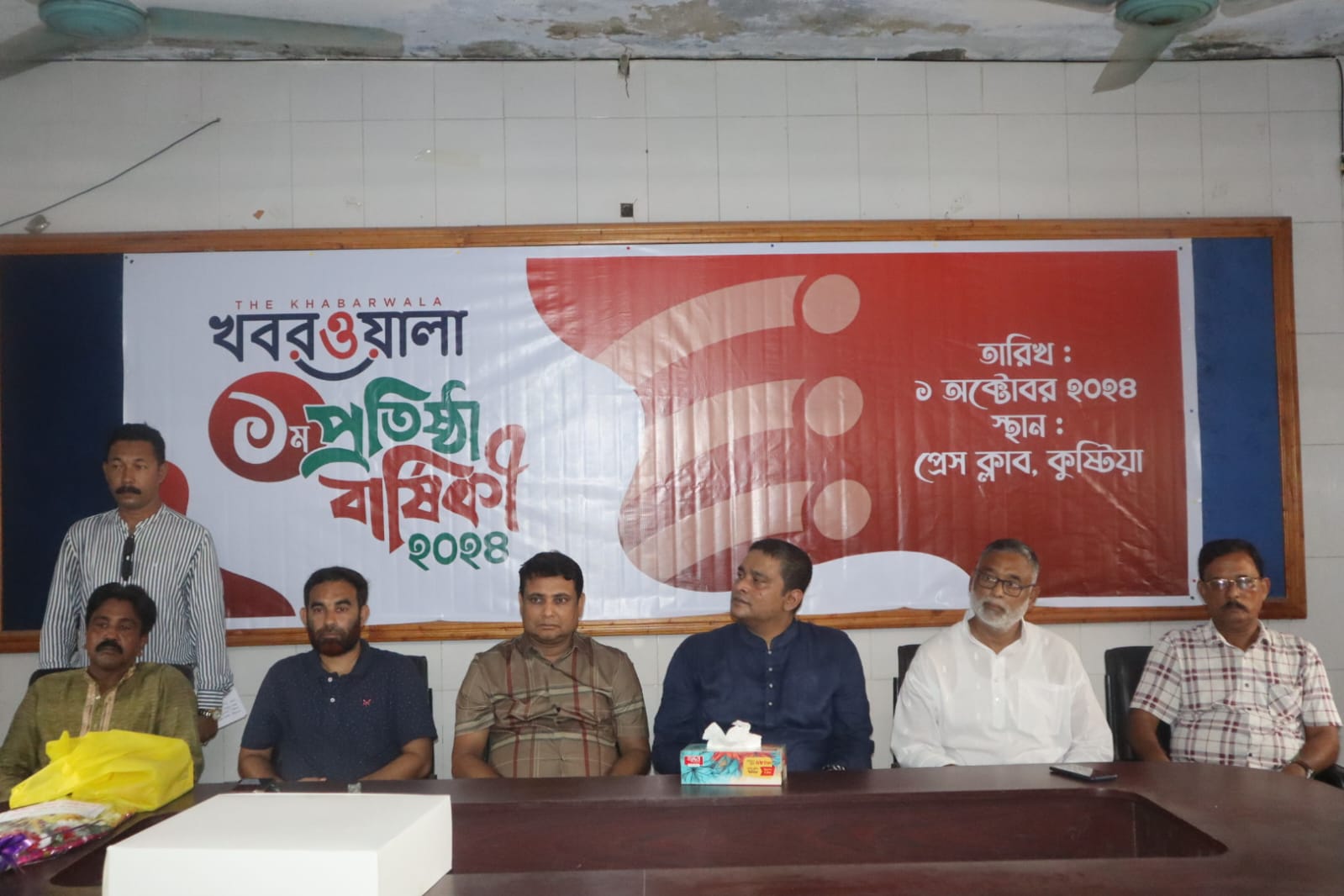 এক বছর আগে আজকের এই দিনে (০১ অক্টোবর) ‘উন্নয়ন ও অগ্রযাত্রায়’ স্লোগানে  কুষ্টিয়ার স্থানীয় দৈনিক খবরওয়ালা পত্রিকা যাত্রা শুরু করে। মঙ্গলবার (১ অক্টোবর) বেলা ১২টার দিকে প্রথম বর্ষপূর্তি উপলক্ষে কুষ্টিয়া প্রেসক্লাবের এম.এ রাজ্জাক মিলনায়তনে কেক কাটা এবং আলোচনা সভা অনুষ্ঠিত হয়েছে। দৈনিক খবরওয়ালা পত্রিকা বিগত এক বছর ধরে ‘উন্নয়ন ও অগ্রযাত্রায়’ এ স্লোগানকে ধারণ করে দায়িত্বশীলতার সঙ্গে সংবাদ পরিবেশন করে আসছে। কুষ্টিয়ার জনপ্রিয় স্থানীয় দৈনিক খবরওয়ালা পত্রিকার বর্ষপূর্তি অনুষ্ঠানে পত্রিকার প্রকাশক ও সম্পাদক সুফি ফারুক ইবনে আবুবকরের সভাপতিত্বে ও প্রেসক্লাবের কোষাধ্যক্ষ এম.লিটন-উজ-জামানের সঞ্চালনায় কেক কাটা এবং আলোচনা সভা অনুষ্ঠিত হয়। দৈনিক খবরওয়ালা পত্রিকার বর্ষপূর্তি অনুষ্ঠানে বক্তব্য রাখেন কুষ্টিয়া প্রেসক্লাবের সভাপতি আল মামুন সাগর, সাধারণ সম্পাদক আবু মনি জুবায়েদ রিপন,সহ-সভাপতি লুৎফর রহমান কুমার, প্রেসক্লাবের নির্বাহী সদস্য ও দৈনিক আন্দোলনের বাজার পত্রিকার প্রকাশক ও সম্পাদক এবং চ্যানেল আইয়ের জেলা প্রতিনিধি আনিসুজ্জামান ডাবলু, সাবেক সহ-সভাপতি ও দৈনিক সংবাদের জেলা প্রতিনিধি মিজানুর রহমান লাকি, দৈনিক সমকাল ও ডিবিসি নিউজের জেলা প্রতিনিধি সাজ্জাদ রানা, প্রেসক্লাবের যুগ্ম সাধারণ সম্পাদক ও নাগরিক টিভির জেলা প্রতিনিধি দেবাশীষ দত্ত, দৈনিক খবরওয়ালা পত্রিকার ভারপ্রাপ্ত সম্পাদক মুন্সী শাহিন আহমেদ জুয়েল,সত্য খবর পত্রিকার প্রকাশক সম্পাদক ও এশিয়ান টিভির জেলা প্রতিনিধি হাসিবুর রহমান রিজু,নয়া দিগন্তের জেলা প্রতিনিধি আ.ফ.ম নুরুল কাদের,আলোকিত সংবাদের এ এইচ এম আরিফ মেহমুদ, সাপ্তাহিক রবি বার্তার সম্পাদক ডাঃ গোলাম মওলা,দৈনিক কুষ্টিয়ার ভারপ্রাপ্ত সম্পাদক শামিম রানা, ভেড়ামারা প্রেসক্লাবের সভাপতি ডাঃ আমিরুল ইসলাম এবং কুমারখালি প্রেসক্লাবের সভাপতি কে এম আর শাহিন। এসময় আরও উপস্থিত ছিলেন কুষ্টিয়া প্রেসক্লাবের যুগ্ম সাধারণ সম্পাদক ও দৈনিক হাওয়া পত্রিকার সম্পাদক আব্দুর রাজ্জাক বাচ্চু, দৈনিক সূত্রপাতের সম্পাদক ও প্রেসক্লাবের দপ্তর সম্পাদক মোকাদ্দেস হোসেন সেলিম, বিটিভির জেলা প্রতিনিধি তরিকুল ইসলাম,দৈনিক দিনের খবরের প্রকাশক ও সম্পাদক আব্দুর রাজ্জাক,প্রেসক্লাবের সদস্য ও দিনের খবর পত্রিকার ভারপ্রাপ্ত সম্পাদক মাহাতাব উদ্দিন লালন, এটিএন বাংলার জেলা প্রতিনিধি খন্দকার তুহিন আহমেদ, প্রেসক্লাবের ক্রীড়া সম্পাদক নিজাম উদ্দিন,প্রেসক্লাবের নির্বাহী সদস্য দেলোয়ার মানিক, বাংলাদেশের খবরের জেলা প্রতিনিধি আক্রামুজ্জান আরিফ,মানব জমিনের এজে সুজন, কুমারখালী প্রেস ক্লাবের যুগ্ম সাধারণ সম্পাদক ও দৈনিক সমকালের উপজেলা প্