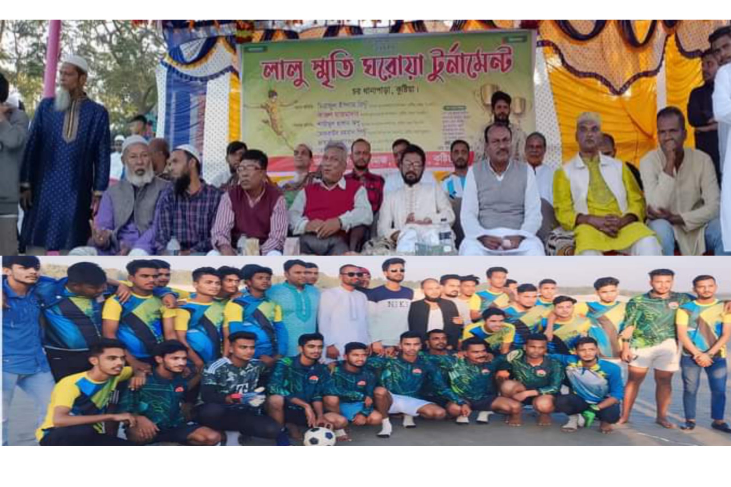 কুষ্টিয়া জেলা বিএনপি’র সাবেক যুগ্ম-সাধারণ সম্পাদক কাজল মাজমাদারের নেতৃত্বে মরহুম বীর মুক্তিযোদ্ধা মোহাম্মদ আলী খাঁন লালুর স্মৃতির স্মরণে থানাপাড়া যুব-সমাজের আয়োজনে লালু স্মৃতি ঘরোয়া এক ফুটবল টুর্নামেন্টের শুভ উদ্বোধন হয়েছে।