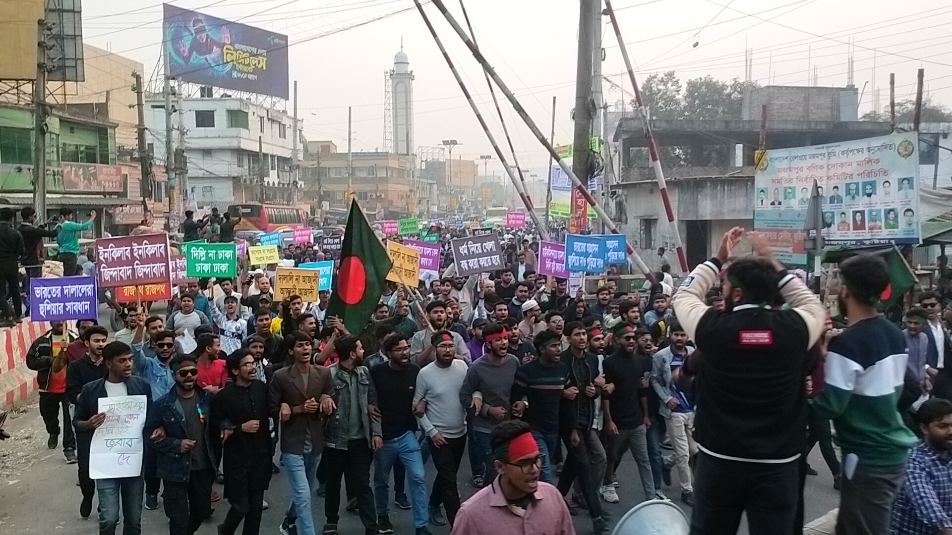 ভারতের আগরতলার বাংলাদেশ সহকারী হাইকমিশনে উগ্র হিন্দুত্ববাদীদের হামলার প্রতিবাদে বিক্ষোভ সমাবেশ করেছেন নাগরিক কমিটি ও বৈষম্য বিরোধী ছাত্র আন্দোলন, কুষ্টিয়া জেলা কমিটি। বুধবার (৪ ডিসেম্বর) বিকেল সাড়ে ৪টায় কুষ্টিয়া শহরতলীর কাস্টম মোড় থেকে শুরু হওয়া মিছিলটি শহরের প্রধান সড়ক প্রদক্ষিণ করে পাঁচ রাস্তার মোড়ে এসে সমাবেশ করে।
