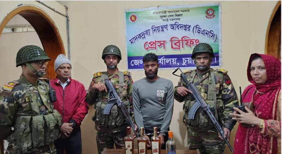 চুয়াডাঙ্গায় বিদেশী মদও ফেনসিডিলসহ আটক ১
