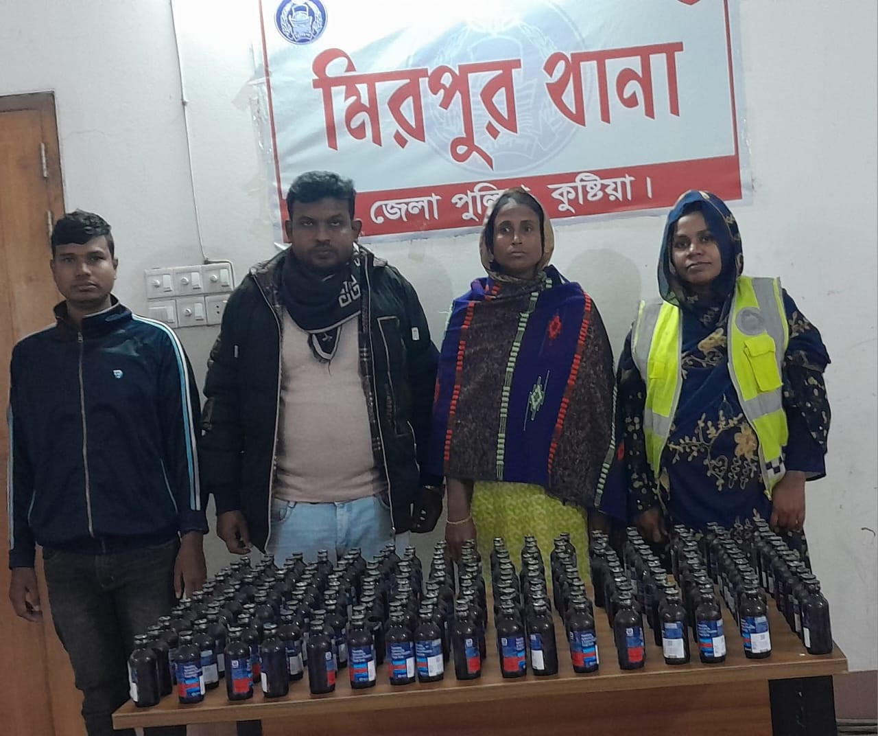 কুষ্টিয়া মিরপুর থানা পুলিশের অভিযানে ফেনসিডিলসহ নারী মাদক ব্যবসায়ী গ্রেপ্তার