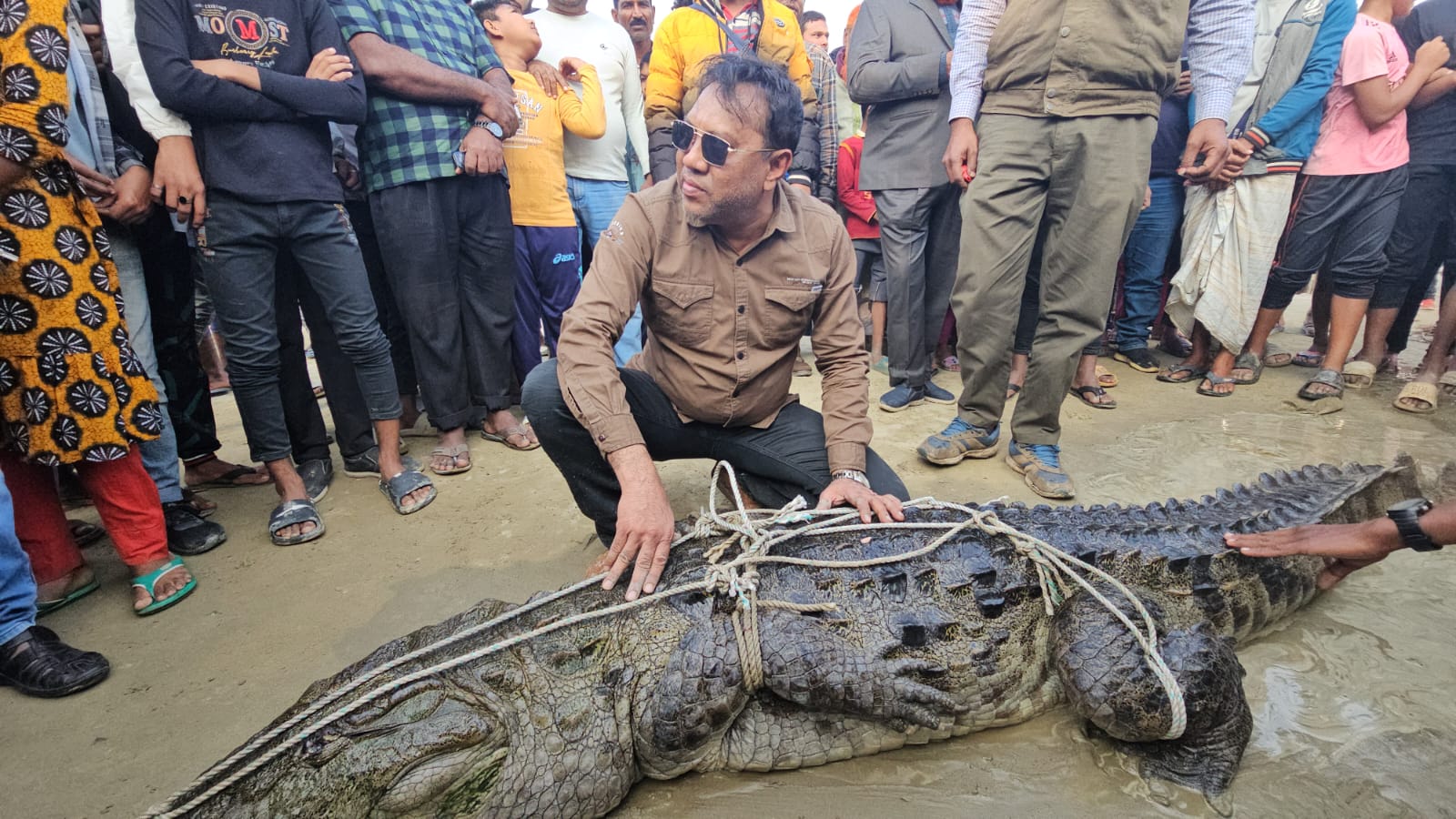 জেলে শরিফুল ইসলাম বলেন, আমি সহ আমরা ৭/৮ জন প্রতি দিনের মত নদীতে মাছ ধরতে যায়। দুপুর ১টার দিকে নদীতে জাল ফেলি। জাল টানার পর প্রথমে মনে করেছিলাম বড় কোনো মাছ ধরা পড়েছে। কিন্তু জাল তোলার পরে দেখি বিশাল আকৃতির কুমির। আমরা জাল কেটে কুমিরটিকে বের করে দড়ি দিয়ে বেঁধে রাখি। পরে বন বিভাগের লোক এসে কুমিরটিকে নিয়ে যায়।