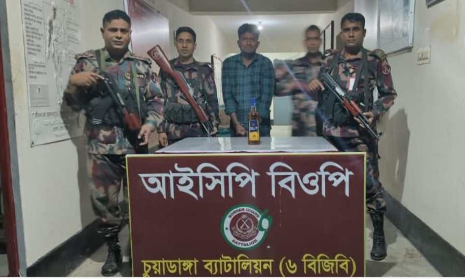 চুয়াডাঙ্গা-বিজিবি-৬ ব্যাটালিয়নের অধীনস্থ দর্শনা আন্তর্জাতিক চেকপোস্টে (আইসিপি) দর্শনা আইসিপিতে কর্মরত হাবিলদার মো. শহিদুল ইসলাম এর নেতৃত্বে একটি টহলদল বৃহস্পতিবার সন্ধ্যা সাড়ে ৬টায় আইসিপির সামনে হতে ভারতীয় এক বোতল মদ ও একটি রিয়েলমি মোবাইলসহ ভুয়া পুলিশ কনস্টেবল পরিচয় প্রদানকারী ঝিনাইদহ জেলার নগরবাথান গ্রামের মন্টু লাল ঘোষের ছেলে শিমুল কুমার ঘোষ (৩৪)কে আটক করে। সে প্রথমে নিজেকে পুলিশ দাবী করলেও পরে সে স্বীকার করে যে সে পুলিশ নয়।রাতেই তার বিরুদ্ধে মামলা দিয়ে দর্শনা থানায় সোপর্দ করা হয়েছে।শুক্রবার সকালে তাকে জেলহাজতে প্রেরণ করা হয়েছে।
