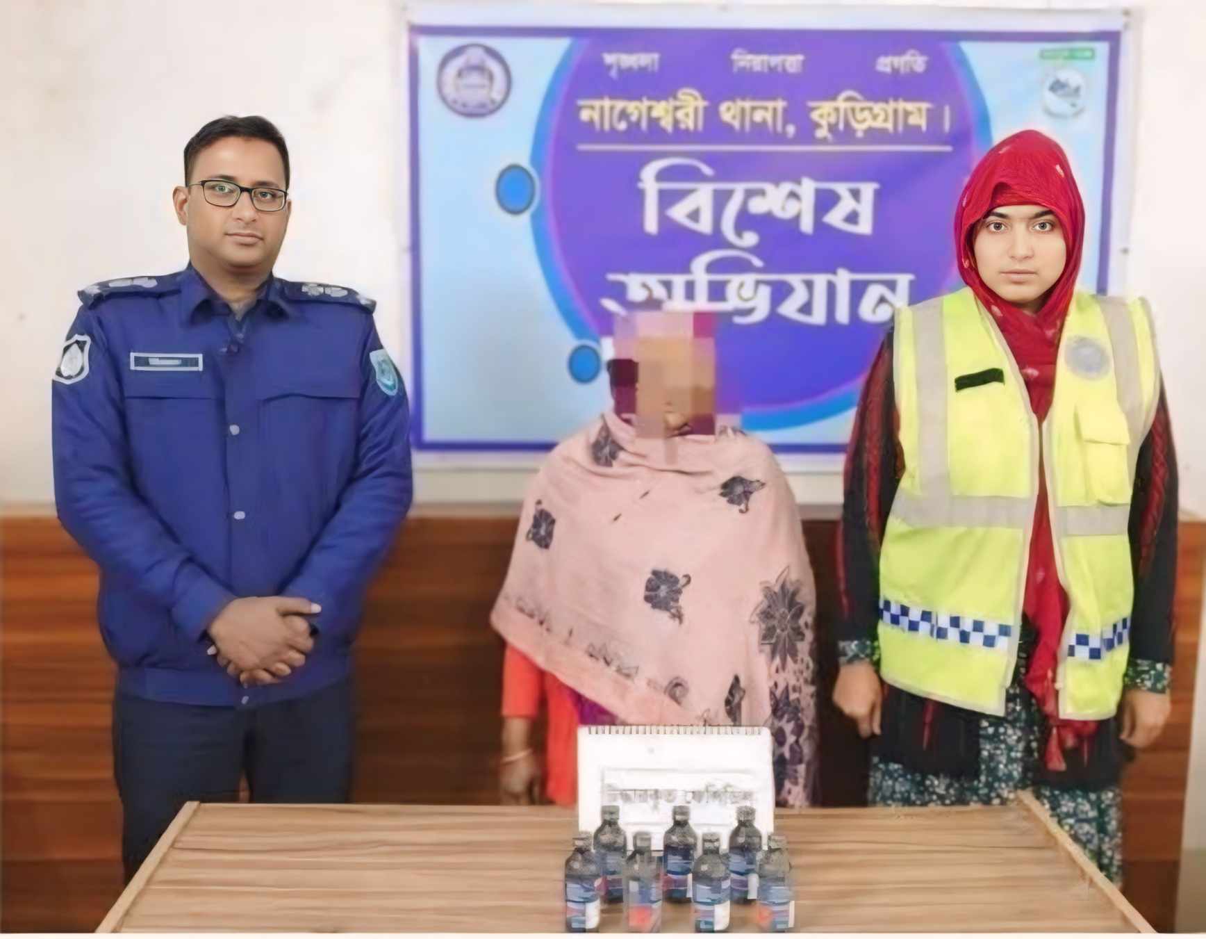 এঘটনায় জেলা পুলিশ মিডিয়া জানায়- কুড়িগ্রাম জেলার নাগেশ্বরী থানা পুলিশের একটি চৌকস টিম থানার আওতাধীন ১নং রামখানা ইউনিয়নের পশ্চিম রামখানা এলাকা থেকে মাদক কারবারি মোছা. রাশেদা বেগমকে (৩৬) ৭ বোতল ফেনসিডিলসহ হাতেনাতে আটক করে এবং তাকে গ্রেফতার দেখানো হয়।
