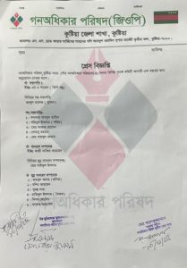 গনঅধিকার পরিষদের ৪১ সদস্য বিশিষ্ট কুষ্টিয়া পৌর শাখার পূনাঙ্গ কমিটি গঠন