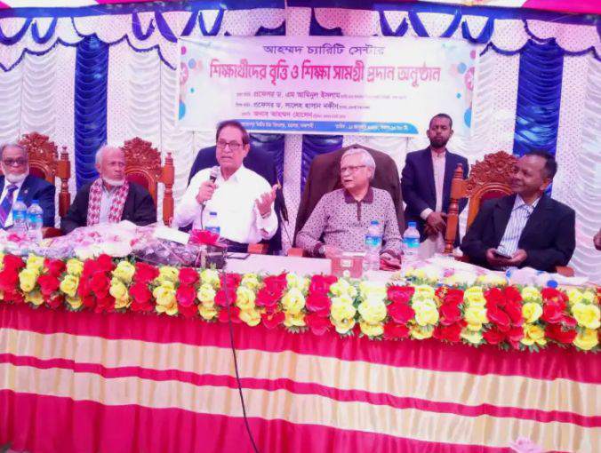 রাজশাহী তানোর উপজেলার নারায়নপুর দ্বিতীয় উচ্চ বিদ্যালয় প্রাঙ্গনে আয়োজিত ‘আহম্মদ চ্যারিটি সেন্টার’ এর উদ্যোগে দরিদ্র ও মেধাবী শিক্ষার্থীদের মাঝে শিক্ষাবৃত্তি ও শিক্ষা সামগ্রী আজ ১১ জানুয়ারি,শনিবার বেলা ১১ টায় উক্ত বিদ্যালয় মাঠে আয়োজিত আহাম্মদ চ্যারিটি সেন্টার কর্তৃক শিক্ষাবৃত্তি ও শিক্ষা সামগ্রী প্রদান অনুষ্ঠান অনুষ্ঠিত হয়। আহম্মদ চ্যারিটি সেন্টার এর প্রতিষ্ঠাতা আহম্মদ হোসেনের সভাপতিত্বে প্রধান অতিথি হিসেবে উপস্থিত ছিলেন মাননীয় অন্তর্বর্তীকালীন সরকারের মাননীয় প্রধান উপদেষ্টার বিশেষ সহকারী শিক্ষা মন্ত্রণালয় (প্রতিমন্ত্রী মর্যাদা) ড.এম আমিনুল ইসলাম,বিশেষ অতিথি হিসেবে উপস্থিত ছিলেন রাজশাহী বিশ্ববিদ্যালয়ের মাননীয় উপাচার্য প্রফেসর ড. সালেহ হাসান নকীব,কুষ্টিয়া বিশ্ববিদ্যালয়ের সবেক ভাইস চ্যান্সেলর মো: রফিকুল ইসলাম, তানোর উপজেলার নির্বাহী অফিসার মোঃ খায়রুল ইসলাম, তানোর থানার ভারপ্রাপ্ত কর্মকর্তা (ওসি) মো: মিজানুর রহমান, মোহনপুর,ধূরইল ইউনিয়নের সাবেক চেয়ারম্যান অধ্যাপক কাজিম উদ্দিন সরকার, কাটাখালি শহীদ জিয়াউর রহমান শারীরিক শিক্ষা কলেজের অধ্যক্ষ,আব্দুস সালাম বিপ্লব,মহব্বতপুর- খানপুর ডিগ্রী কলেজের অধ্যক্ষ মো:রেজাউল ইসলাম, রাষ্ট্রপতি কর্তৃক পদকপ্রাপ্ত স্বশিক্ষিত কৃষি বিজ্ঞানী নূর মোহাম্মদ,কৃষি গবেষণা ও পাঠাগার এর চেয়ারম্যান মোঃ জাহাঙ্গীর আলম শাহ, বিশিষ্ট ব্যবসায়ী আলহাজ্ব মোঃ জসিম উদ্দিন মোল্লা। এছাড়াও আরো উপস্থিত ছিলেন তানোর উপজেলার বিভিন্ন শিক্ষা প্রতিষ্ঠানের অধ্যক্ষ, শিক্ষক-কর্মচারী বৃন্দ,গণ্যমান্য ব্যক্তিবর্গ ও সুধীমন্ডলী,সাংবাদিক সহ বিভিন্ন শ্রেণি পেশার মানুষ। প্রধান অতিথি ড.এম আমিনুল ইসলাম এর মাধ্যমে ৪ জন শিক্ষার্থীকে ল্যাপটপ এবং ১১ জন শিক্ষার্থীকে আর্থিক চেক প্রদান করা হয়। অনুষ্ঠানটির সঞ্চালনায় ছিলেন জ্যেষ্ঠ প্রভাষক ও সাংবাদিক মো: মফিজ উদ্দীন সরকার।