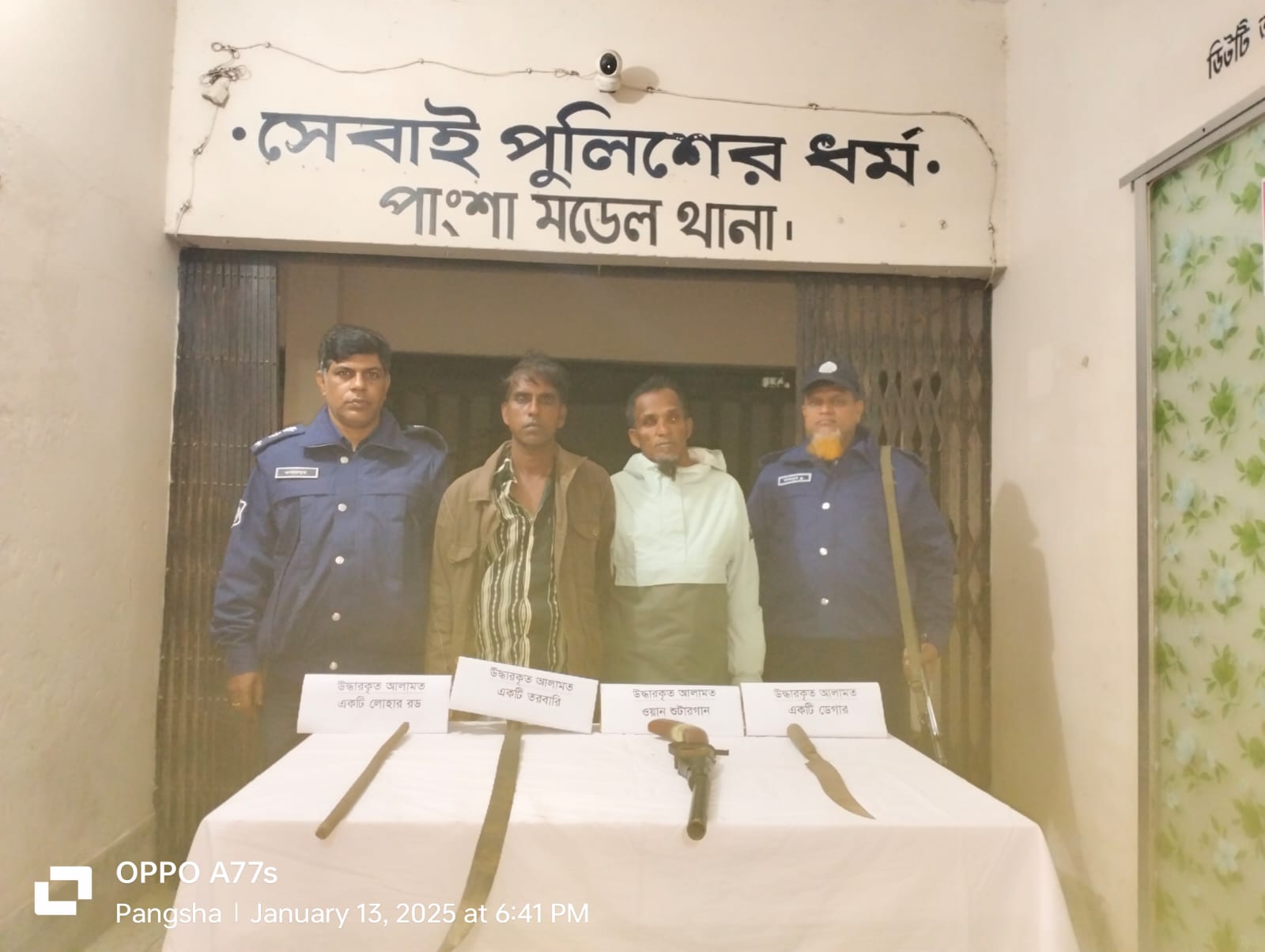 এসময় আসামীদের কাছ থেকে একটি দেশীয় ওয়ানশ্যুটার গান, একটি তরবারি,একটি ড্যাগার ও একটি লোহার রড উদ্ধার করে পুলিশ।
