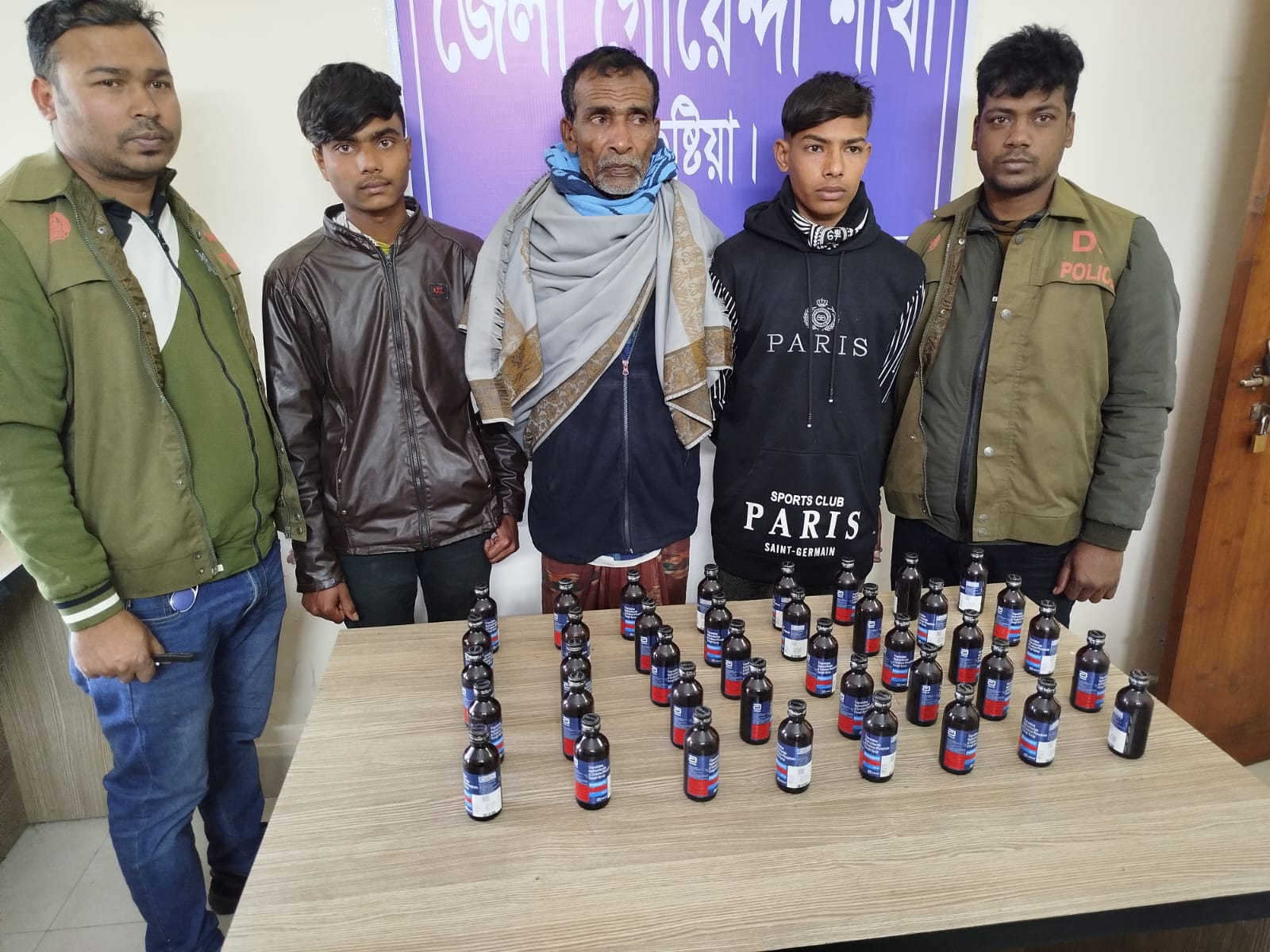কুষ্টিয়া জেলা গোয়েন্দা শাখা (ডিবি) পুলিশের বিশেষ অভিযানে ফেন্সিডিলসহ ৩ জনকে গ্রেপ্তার করা হয়েছে। শুক্রবার (১৯ জানুয়ারি ২০২৫) দুপুর ১টা ১০ মিনিটের দিকে কুষ্টিয়া মডেল থানাধীন মজমপুর রেলগেট এলাকায় এই অভিযান পরিচালিত হয়।