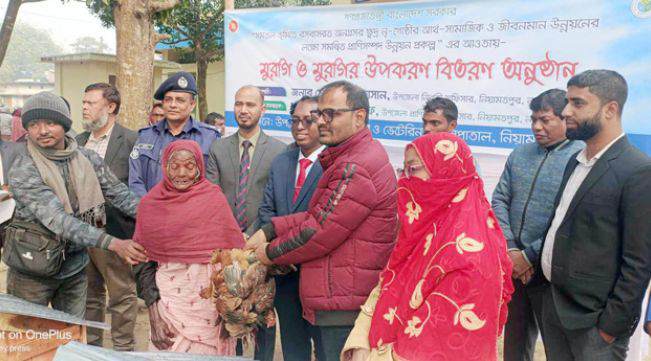 নিয়ামতপুরে সুফলভোগীদের মাঝে মুরগি ও মুরগির উপকরণ বিতরণ