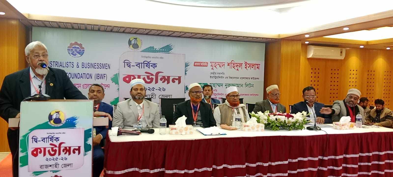 টাকা মাত্র দশ হাজার খুলবে ব্যবসার দ্বার স্লোগানে-ইন্ডাস্ট্রিয়াল এ্যান্ড বিজনেসম্যান ওয়েফেয়ার ফাউন্ডেশনের রাজশাহী জেলার উদ্যোগে দ্বি-বার্ষিক সম্মেলন ২০২৫-২০২৬ অনুষ্ঠিত হয়েছে।
