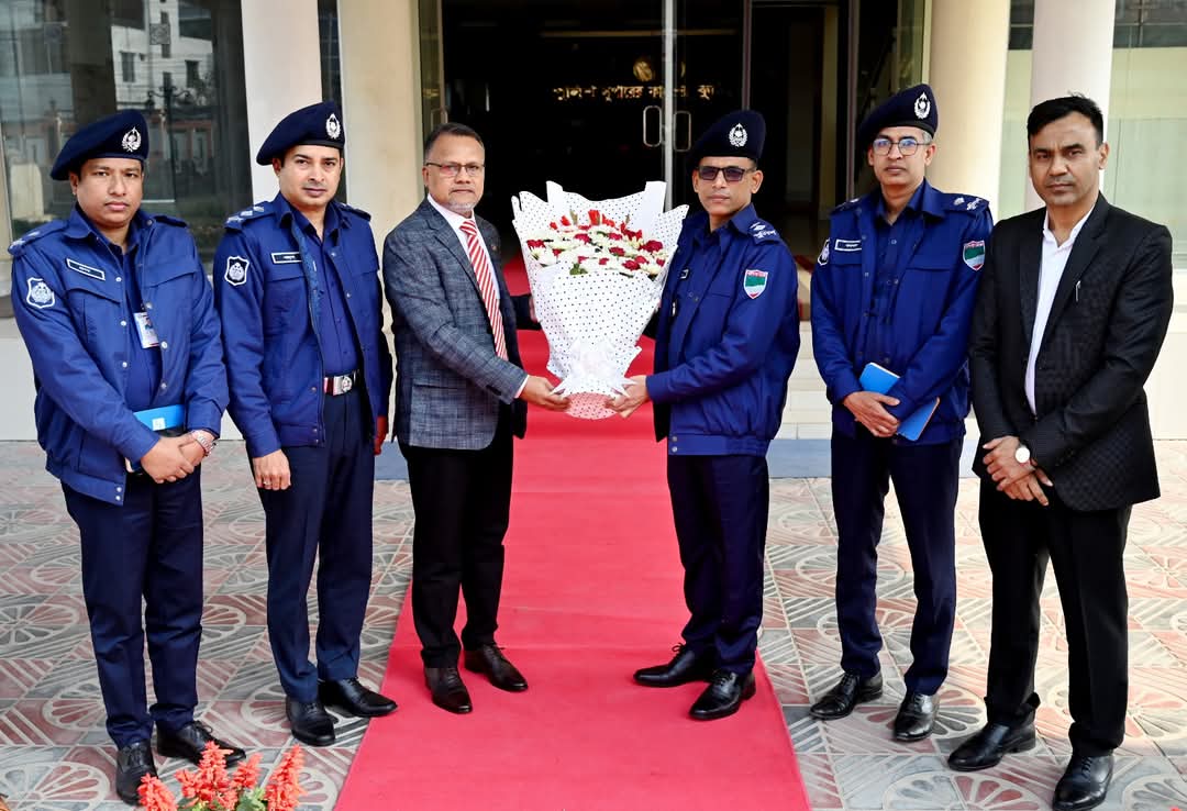 সোমবার (২৭) জানুয়ারি বাংলাদেশ পুলিশ ঢাকা স্পেশাল ব্রাঞ্চ (স্পেশাল অ্যাফেয়ার্স) ডিআইজি মোয়াজ্জেম হোসেন কুষ্টিয়ায় জেলা পুলিশের বিশেষ শাখা পরিদর্শনে আসলে তাকে ফুলেল শুভেচ্ছা জানান জেলার পুলিশ সুপার মিজানুর রহমান।