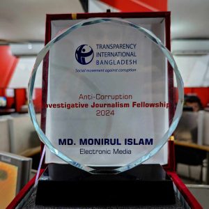 অনুসন্ধানী সাংবাদিকতায় টিআইবি অ্যাওয়ার্ড পেলেন মোহনা টিভির মনিরুল ইসলাম