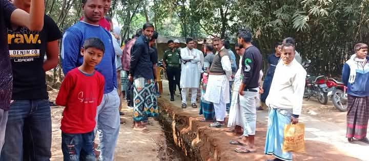 দেশের আইন যেন তার হাতে এমন ভেবেই গ্রামবাসীর কথার তোয়াক্কা না করে শত বছরের রাস্তা কেটে পুকুর বানানো শুরু করছিলেন মোজাহার আলী।