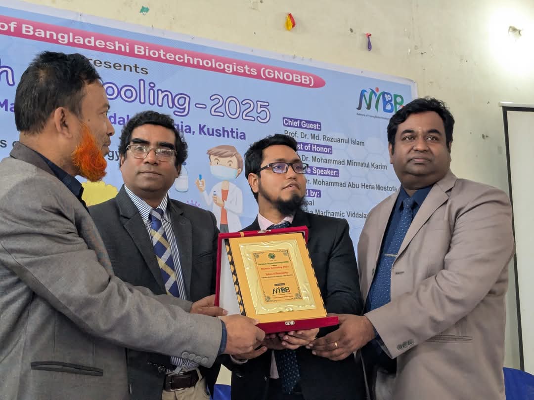 গ্লোবাল নেটওয়ার্ক অব বাংলাদেশী বায়োটেকনোলিজস্টস (GNOBB) এর উদ্যোগে কুষ্টিয়া শহরস্থ আদর্শ মাধ্যমিক বিদ্যালয়ে “বায়োটেক স্কুলিং-২০২৫” অনুষ্ঠিত হয়েছে। আজ বৃহস্পতিবার সকাল ১০ টা থেকে দুপুর ১ টা পর্যন্ত চলে এই অনুষ্ঠান। অনুষ্ঠানে সার্বিক সহযোগিতায় ছিল নেটওয়ার্ক অব ইয়ং বায়োটেকনোলজিস্টস অব বাংলাদেশ (NYBB)-এর ইসলামী বিশ্ববিদ্যালয় শাখার সদস্যবৃন্দ।